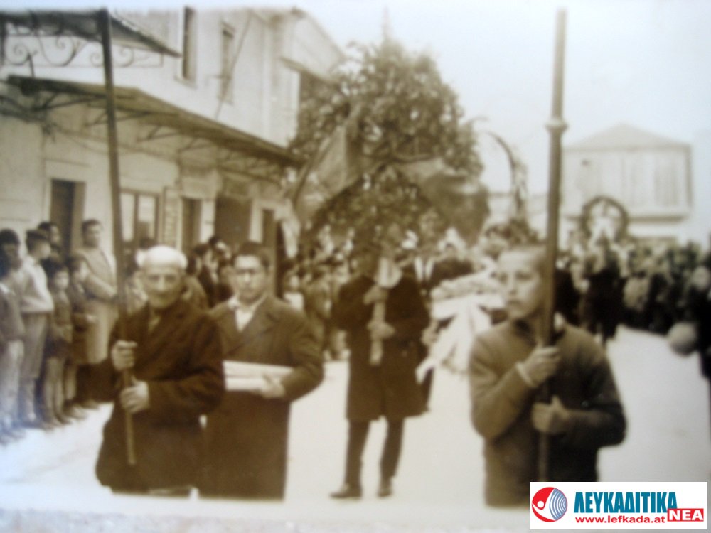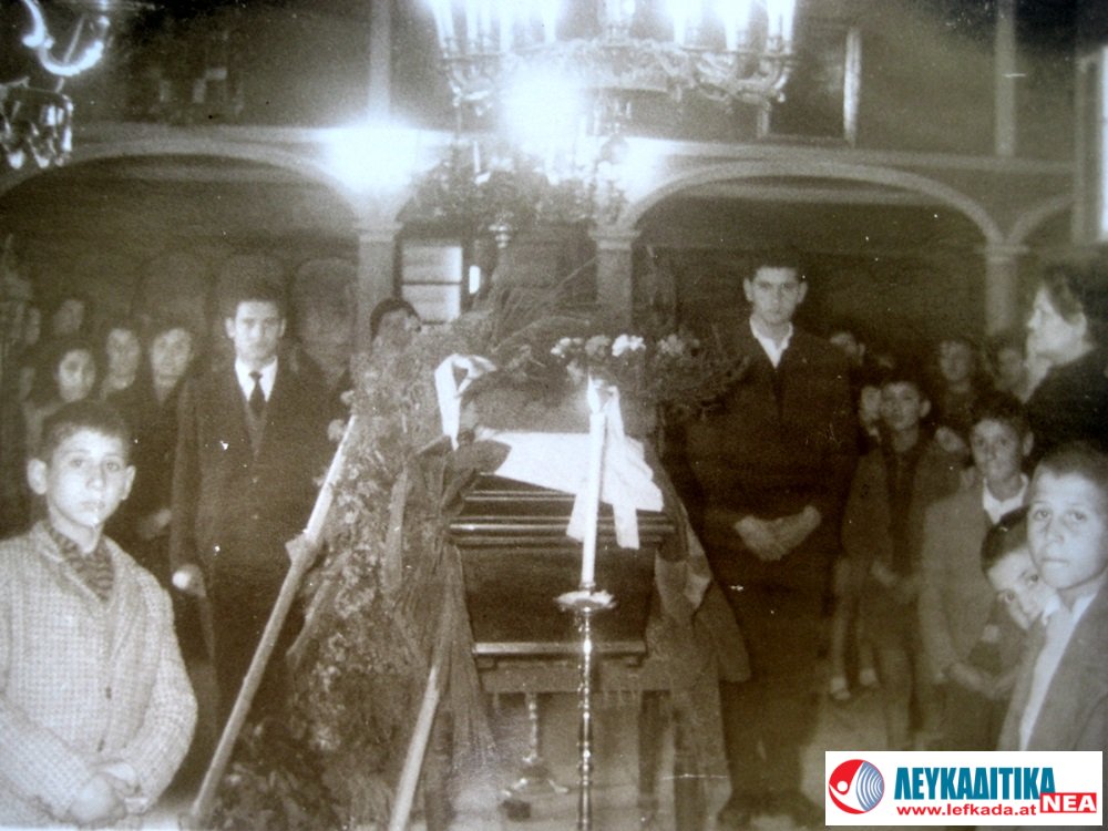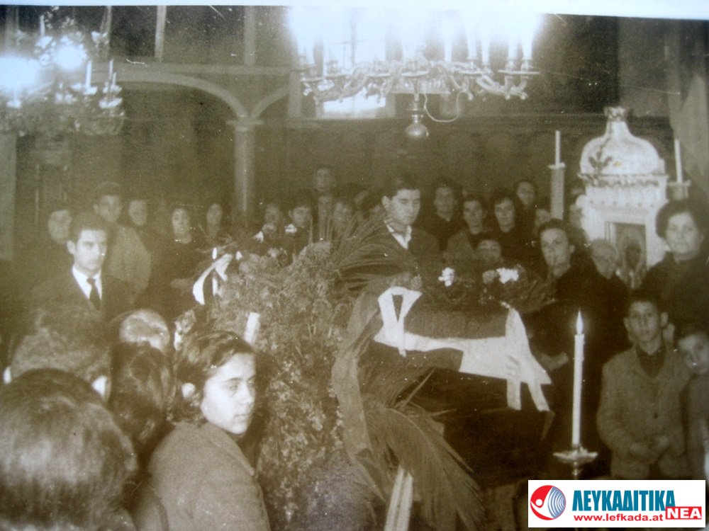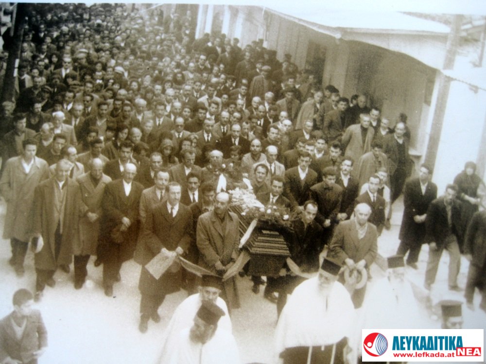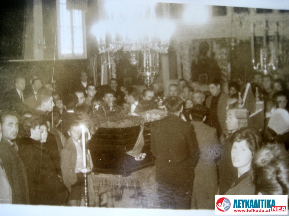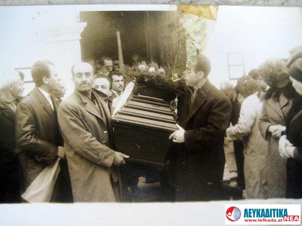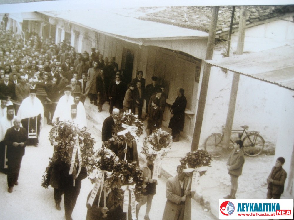 (Οι φωτογραφίες που ακολουθούν, εκτός της δεύτερης στη σειρά που είναι στον Γοργοπόταμο, είναι από την πάνδημη κηδεία του Σταθιού στη Λευκάδα – Στην τελευταία στη σειρά, μέσα στην εκκλησιά, αναγνωρίσαμε, χωρίς να μπορούμε να το πούμε με απόλυτη σιγουριά, τον Κολυβιάτη Φώτη Κατσαρό – Καραγιάννη).