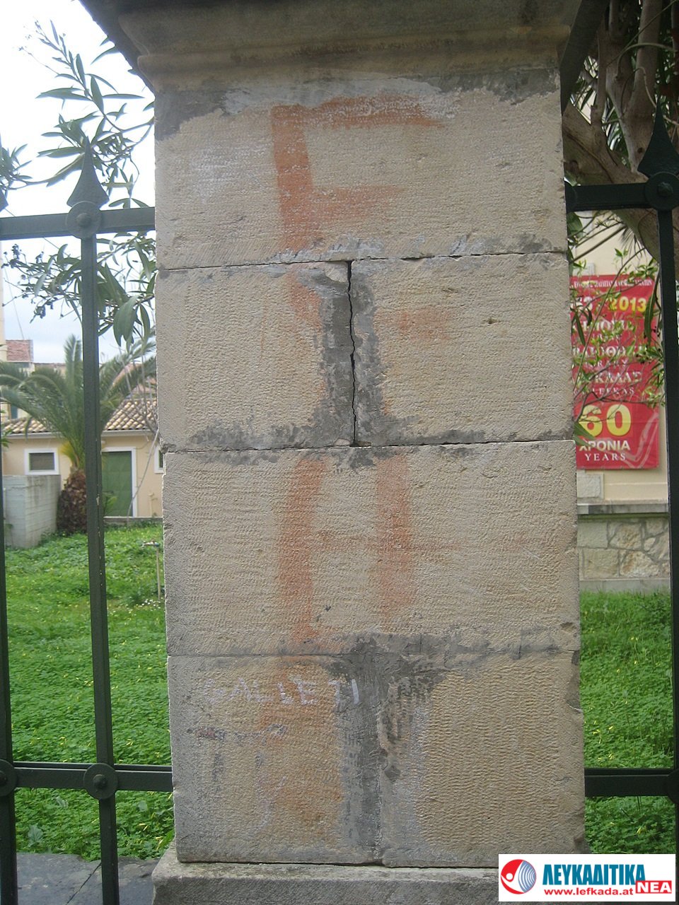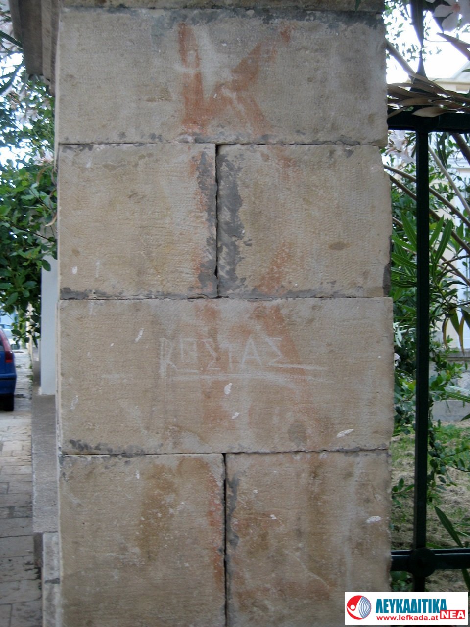 Είναι τώρα πια ξεθωριασμένα, δεν κραυγάζουν όπως άλλοτε, τα προσπερνάμε συνήθως, πρέπει να κοιτάξει κανείς προσεκτικά για να τα ανακαλύψει. Όπως στο κέντρο της πόλης μας, στο αρχοντικό Ζουλίνου, όπου στεγάζεται η Δημόσια Βιβλιοθήκη Λευκάδας. Στο πέτρινο αυτό νεοκλασικό, κτίσμα του τέλους του 19ου αιώνα, είχε στεγαστεί παλιότερα η Εθνική Τράπεζα, η στρατιωτική Διοίκηση των Ιταλών και Γερμανών κατακτητών κ.ά.