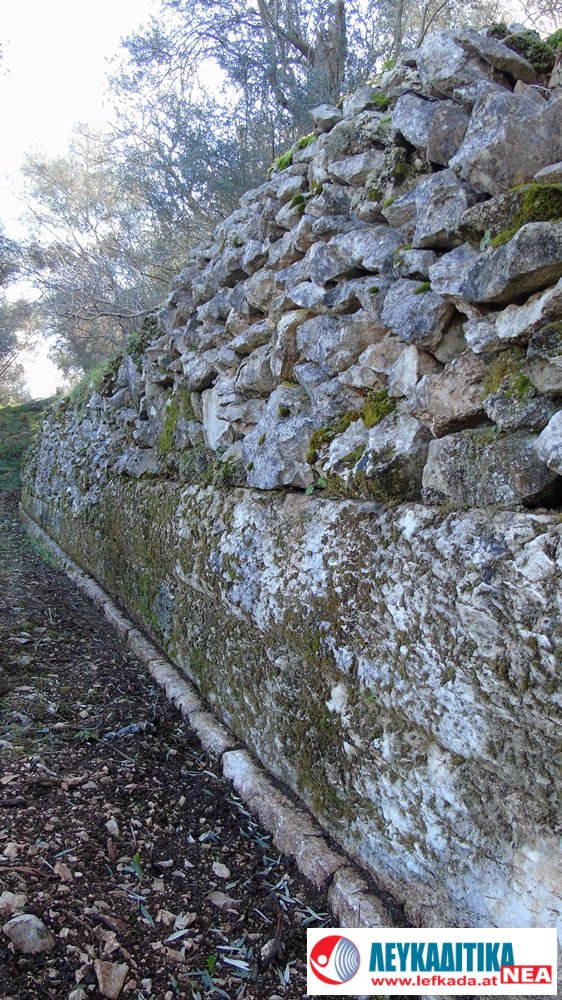 Τέλος στο δυτικότερο άκρο του επίπεδου πλατώματος όπου ήταν ορατό τμήμα τοίχου διαπιστώθηκε ότι αυτός ο τοίχος έχει μήκος 3 μέτρα και πλάτος 80 εκατοστά, είναι κτισμένος ισοδομικά με επεξεργασμένους ογκόλιθους και είναι ορατές 4 σειρές δόμων ύψους περίπου 1,5 μέτρων. Οι 3 ανώτεροι δόμοι έχουν κατεύθυνση σχεδόν βορρά-νότο, ενώ ο τέταρτος είναι τοποθετημένος με κατεύθυνση ανατολής-δύσης, σχηματίζουν δηλαδή γωνία. Λόγω της θέσης του είναι πολύ πιθανό να πρόκειται για αναλημματικούς τοίχους του κοίλου στα δυτικά και βόρεια και επομένως με σχετική επιφύλαξη μπορούμε να τοποθετήσουμε βόρεια αυτών των τοίχων τη μία πάροδο.