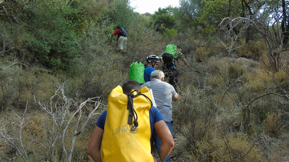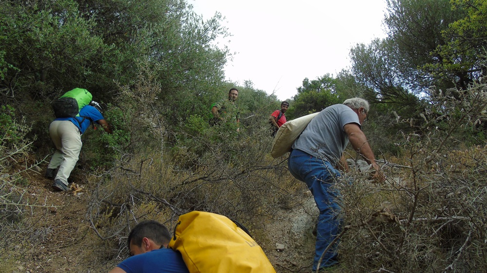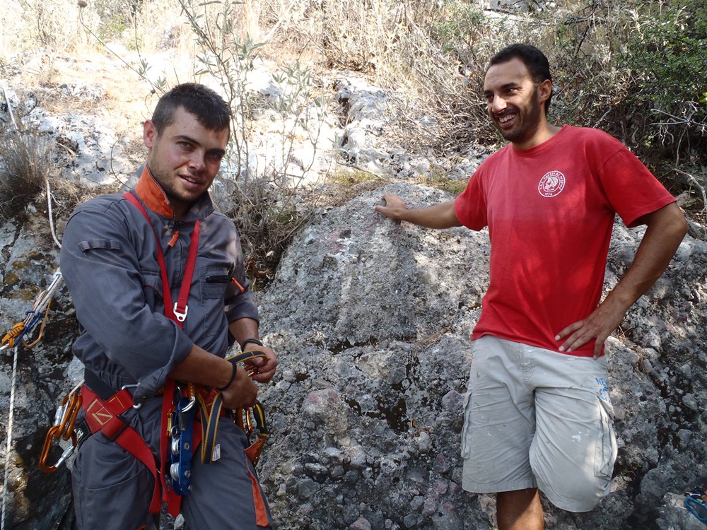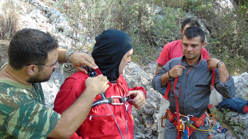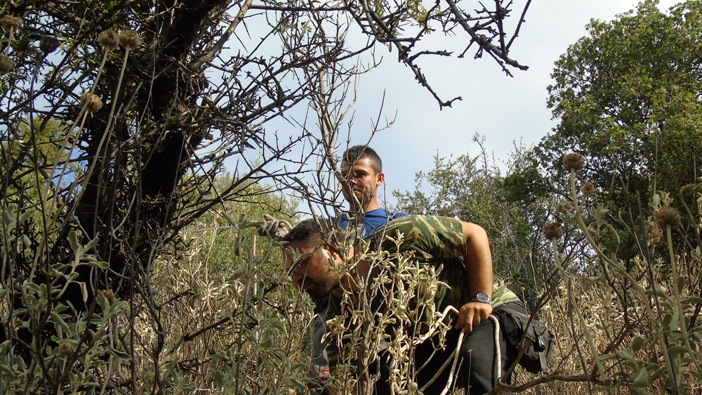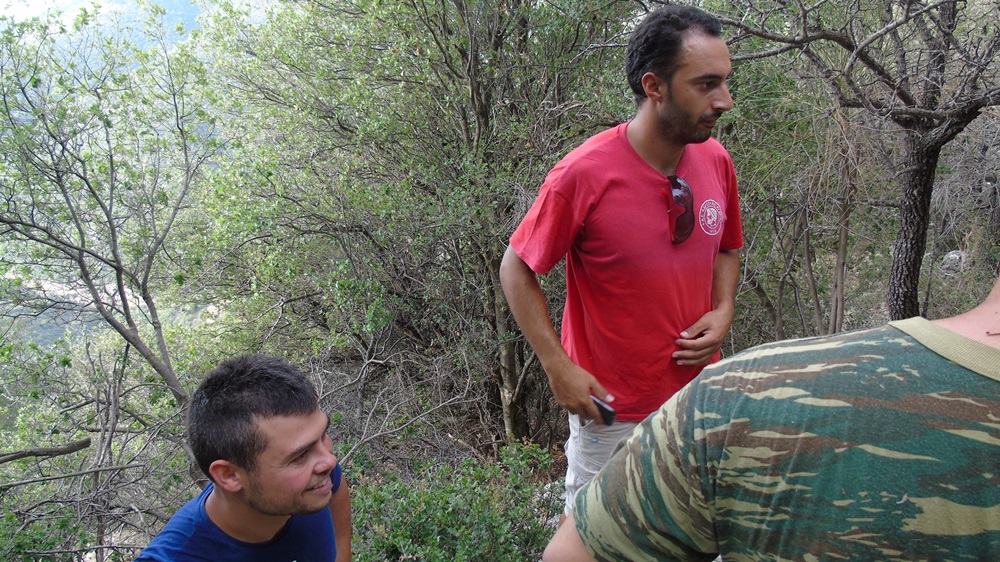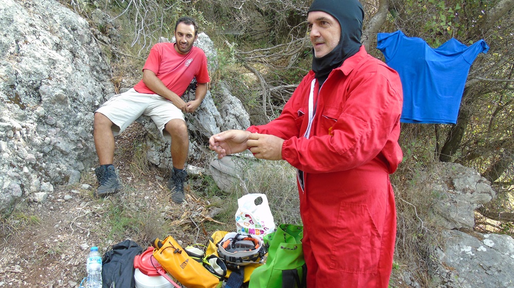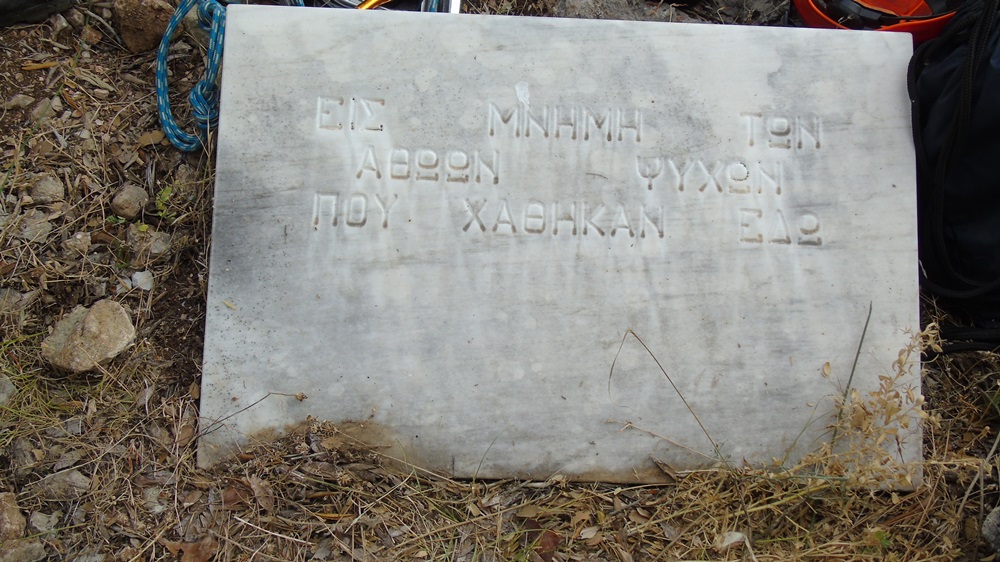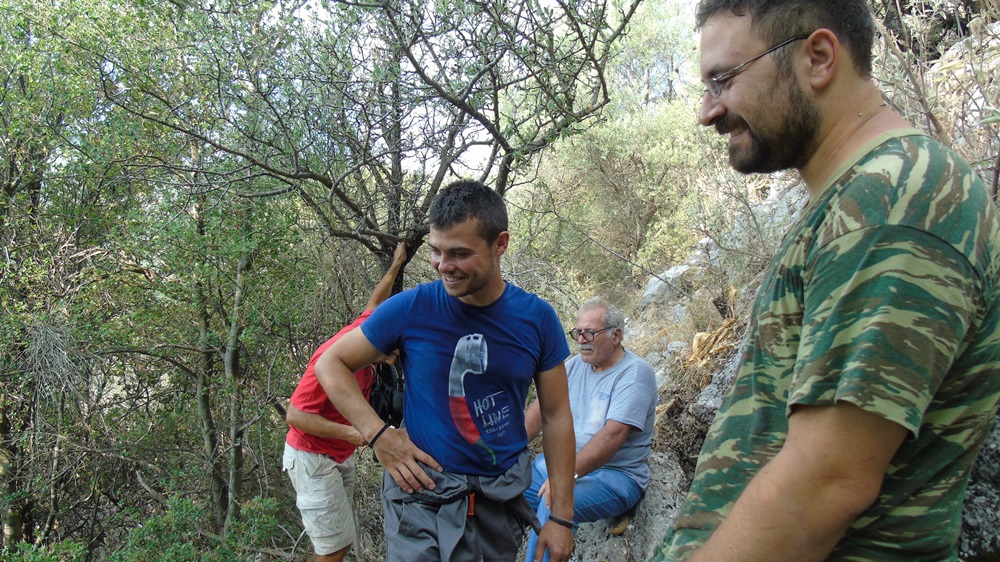 «Η σημερινή αποστολή, μας βρήκε στην περιοχή ανάμεσα από Άλατρο και Χαραδιάτικα Λευκάδος, σε ένα βάραθρο 15-17μ, όπου από το 1945 τον Ιανουάριο είχε να κατέβει τελευταία φορά άνθρωπος με σκοπό να ανασύρει τα σώματα των ανθρώπων που έριξαν μέσα σε αυτό. Ένας στόχος προς έρευνα από την περσινή παρουσία μας στο νησί, εκπληρώθηκε σήμερα. Η παρέα αποτελούμενη από 6 άτομα τους: Φίλιππος Κολυβάς, Βαγγέλης Βερροιώτης, Αλέξανδρος Βερροιώτης, ο οδηγός μας Θέρμος Αναστάσιος, Κωνσταντίνος Μπακολίτσας (SELAS Caving Club / Σπηλαιολογικός Σύλλογος – ΣΕΛΑΣ), Πάνος Καρούτσος (Ελληνική Σπηλαιολογική Εταιρεία), έγινε γρήγορα ομάδα και μοιράστηκε τις πληροφορίες και τις ιστορικές αναφορές γι΄ αυτό. Έπειτα από 30 λεπτά με το αμάξι και 25 λεπτά ανάβασης-πεζοπορίας φτάσαμε στο βάραθρο, όπου αφού το αρματώσαμε με ασφάλεια και με σεβασμό πάντα προς τον χώρο και στις ψυχές που χάθηκαν μέσα σε αυτό άδικα, ξεκινήσαμε την κάθοδο και την έρευνα. Τα συναισθήματα μας, ποικίλα. Στεναχώρια, λύπη, μια εικόνα στο μυαλό μου αγωνίας και τρόμου που θα ζούσαν οι άνθρωποι αυτοί φτάνοντας στο χείλος του βαράθρου. Τι άραγε θα μπορούσαν να σκεφτούν εκείνες τις τελευταίες στιγμές;;»