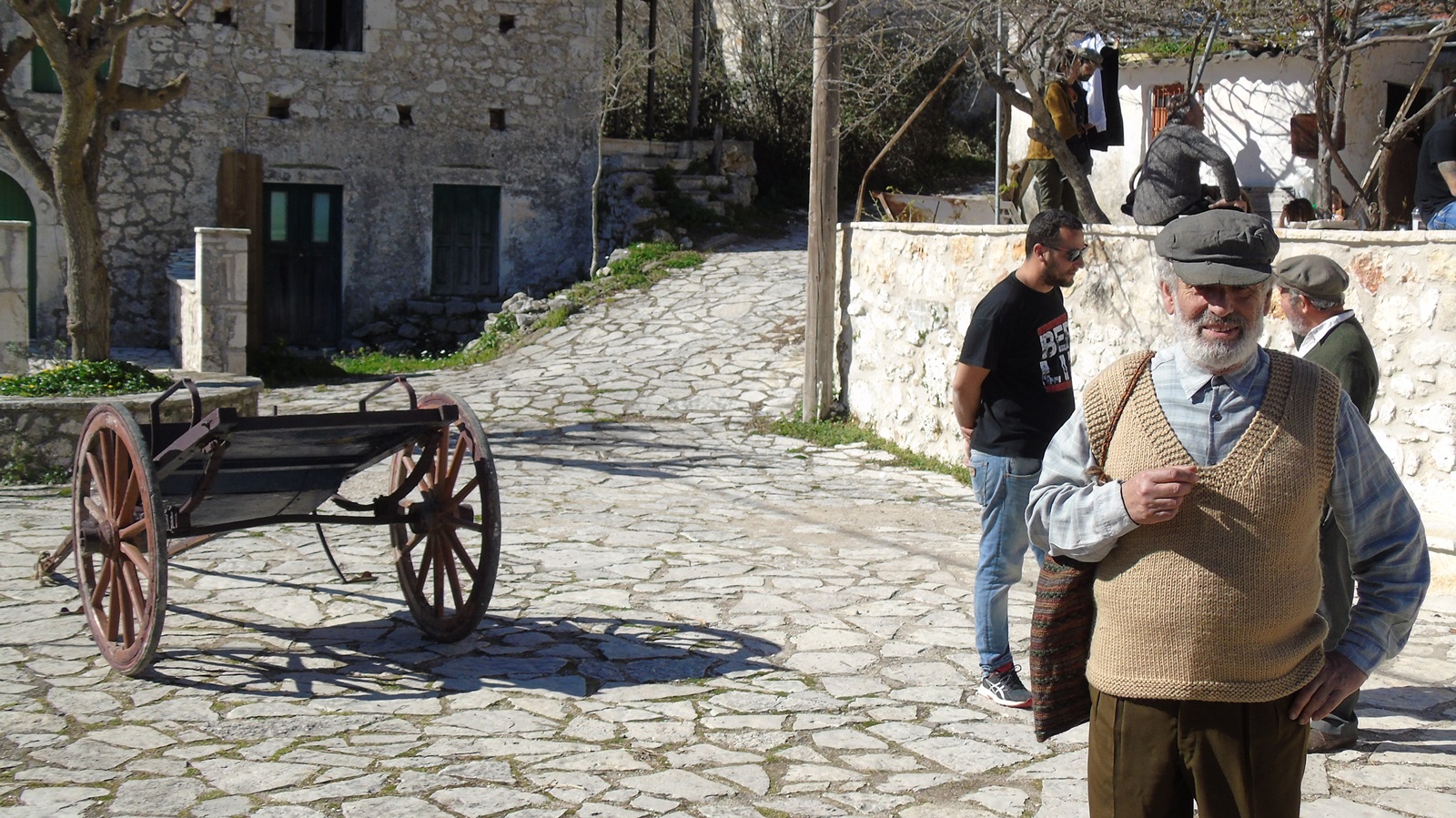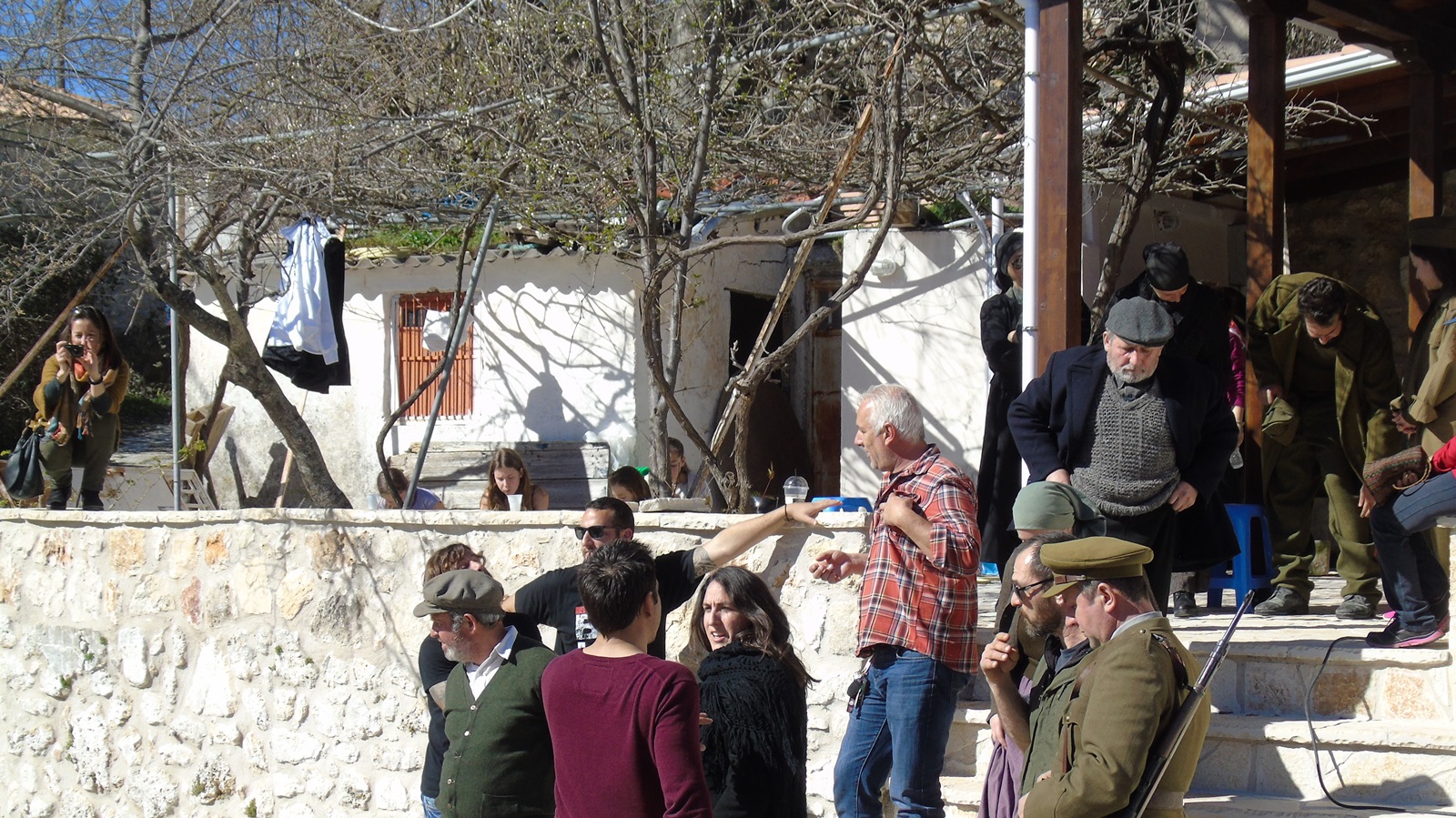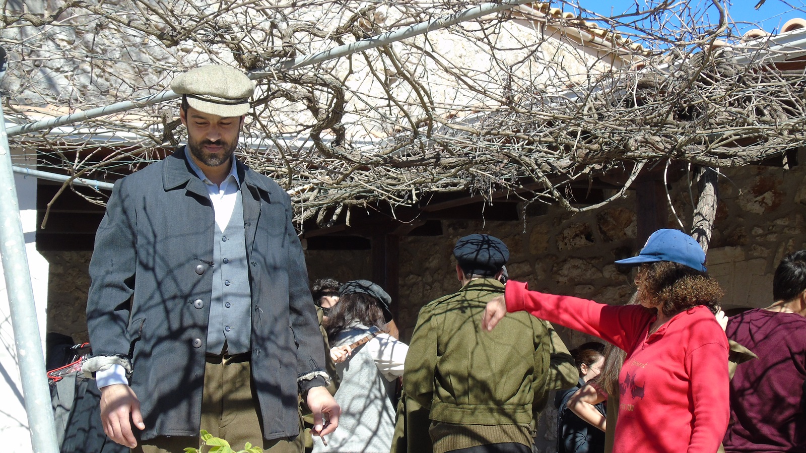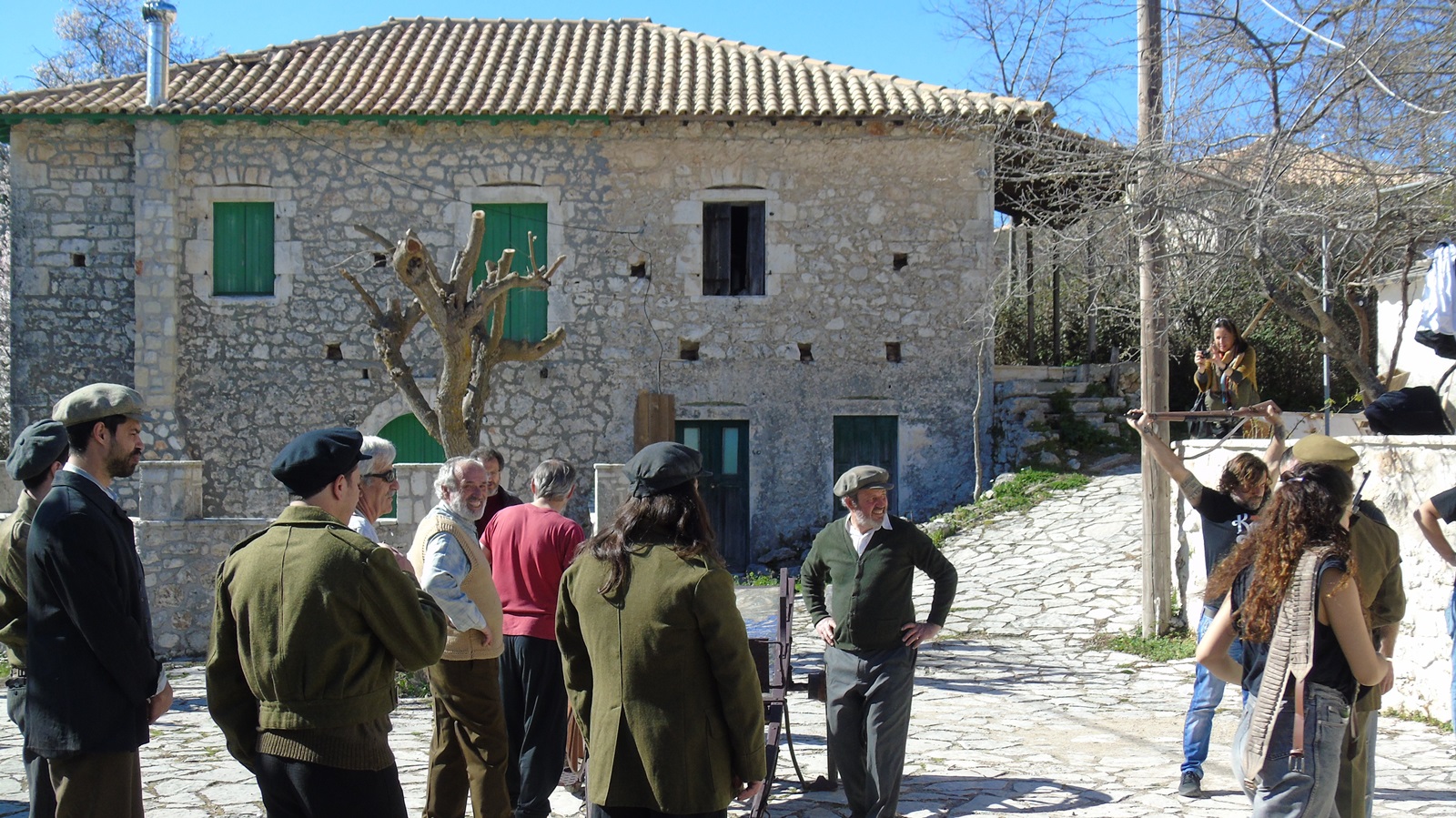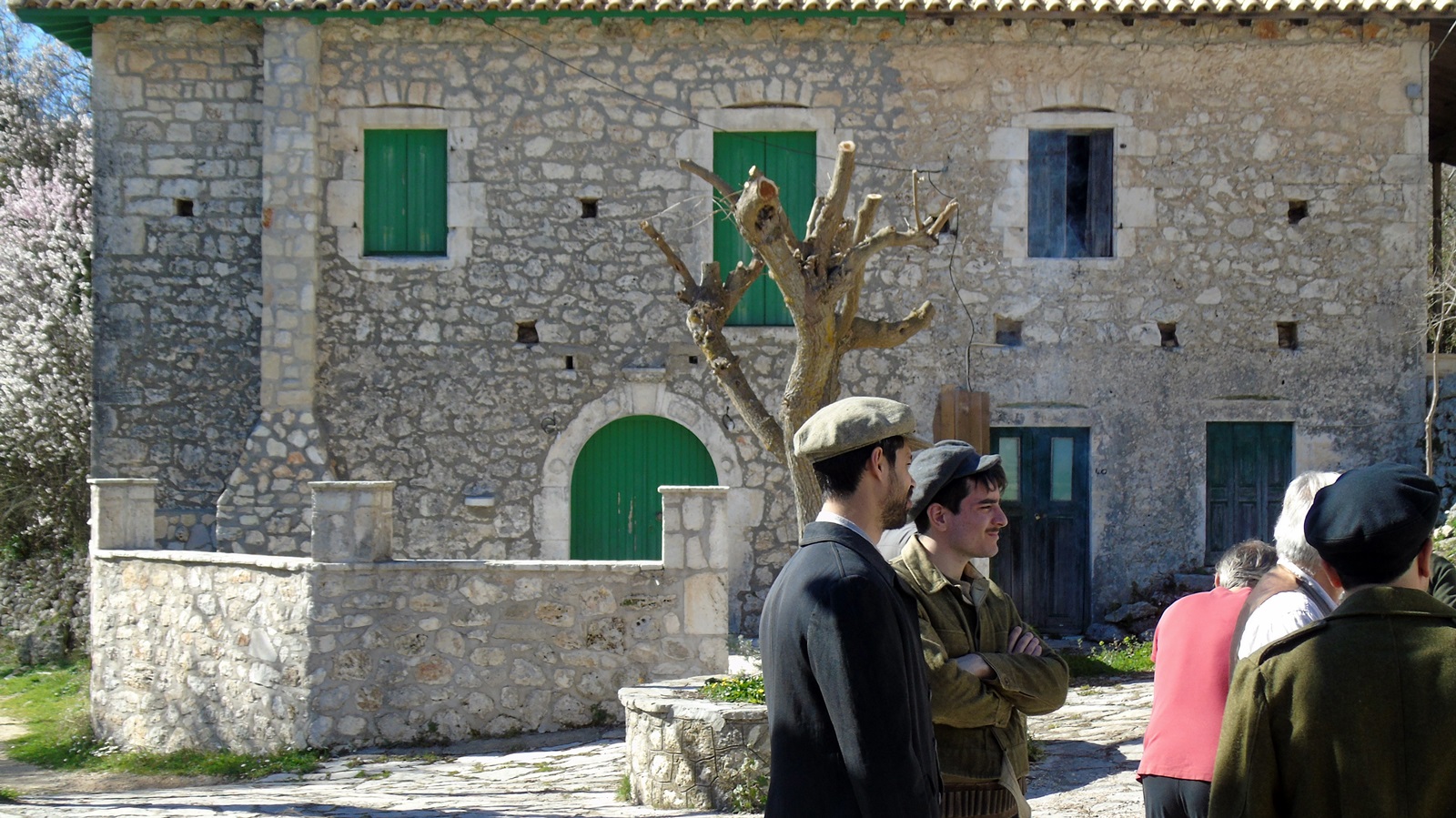 Γυρίστηκαν κάποιες σκηνές με τον ταχυδρόμο να μοιράζει τα γράμματα, αλλά και από την περίοδο του εμφυλίου -1949- με αντάρτες του Δημοκρατικού Στρατού Ελλάδας (ΔΣΕ), χωροφύλακες και παρακρατικές συμμορίες της εποχής εκείνης. (Στο σενάριο της ταινίας οι πρωταγωνιστές µαστόροι πέτρας έχουν αποκοπεί από τα χωριά τους εξαιτίας ενός δεκαετούς πολέµου. Υπάρχουν συγκεκριμένες αναφορές χωρίς όμως να διευκρινίζεται απόλυτα πότε ακριβώς είναι αυτός ο πόλεμος).