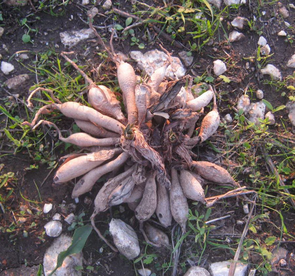 Οι ρίζες του φυτού είναι κόνδυλοι που περιέχουν άμυλο.