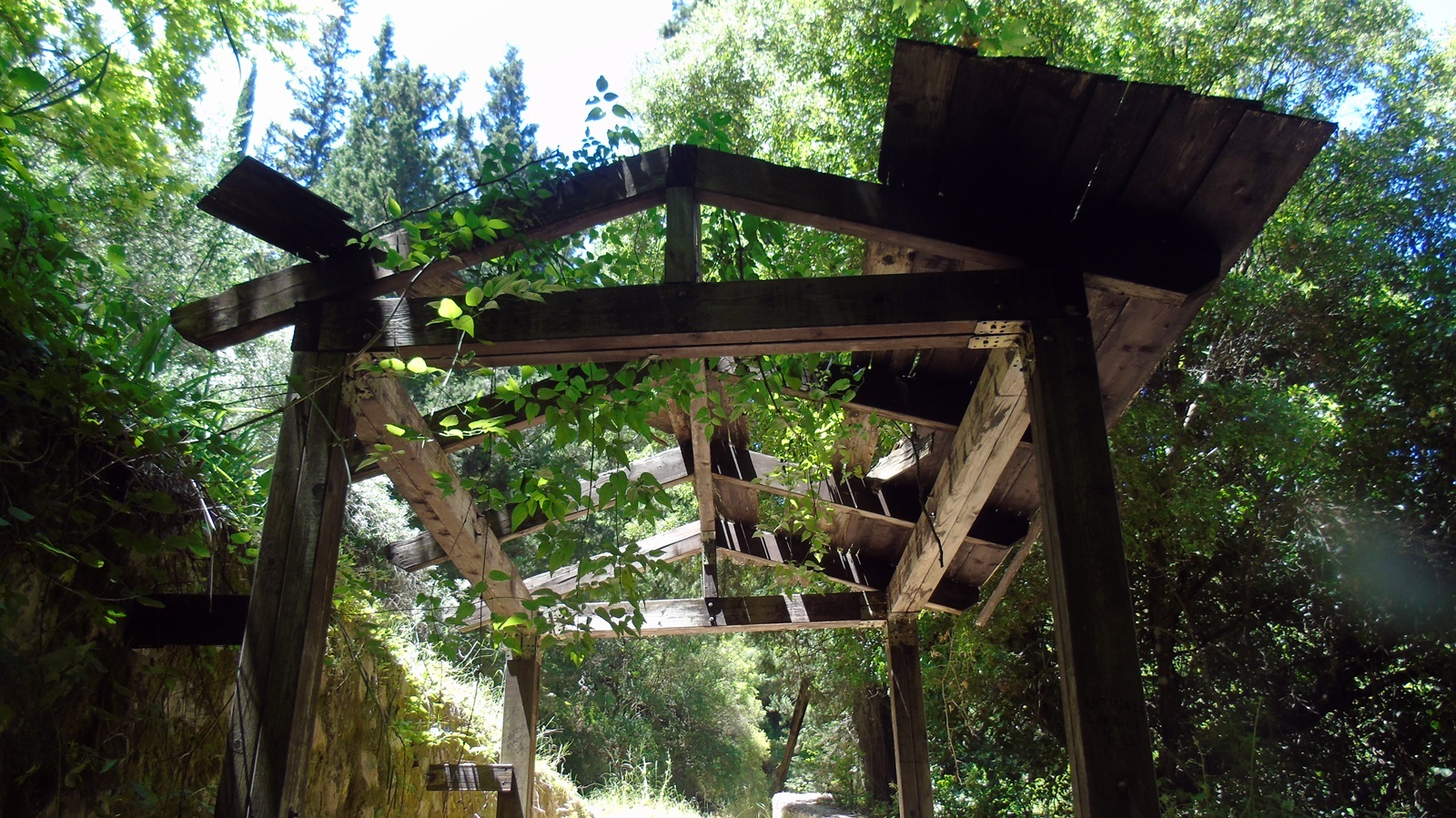 Το κιόσκι στο τέρμα του μονοπατιού είναι κατεστραμμένο. Το ίδιο ισχύει και γι΄ αυτό που βρίσκεται στην είσοδο του φαραγγιού, στην «Πηγή Σπηλιάς», κάτω από το μεγάλο βράχο…