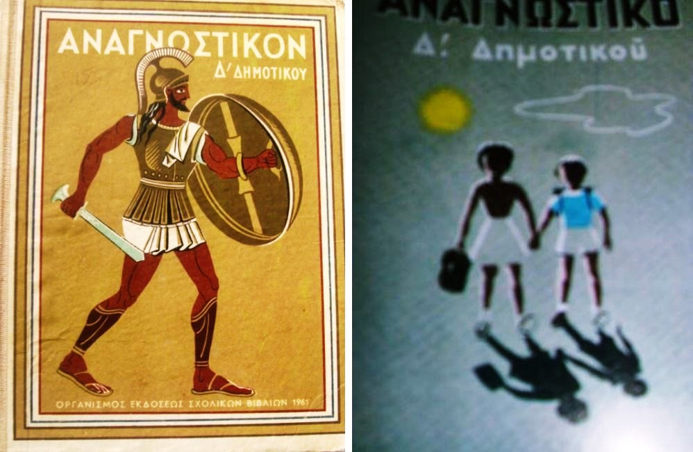 6_alfavitarioΕικ. 3. Εξώφυλλο αναγνωστικού Δ’ Δημοτικού, 1952. «Εδώ έχουμε ένα Αναγνωστικό της Δ΄ Δημοτικού, είναι η πρώτη του έκδοση το 1949, σε εικονογράφηση Σπύρου Πολενάκη. Τα περιεχόμενά του καθορίζουν και όλα τα Αναγνωστικά μέχρι το 1974 …και το 1979».17