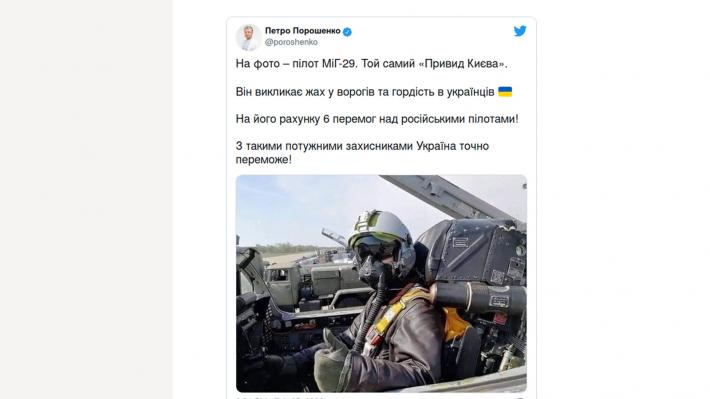 Η αναπαραγωγή του fake news συνεχίστηκε και στο πλέον υψηλό επίπεδο. Ο Πέτρο Ποροσένκο, ο πρόεδρος τη Ουκρανίας από το 2014 έως το 2019, δημοσίευσε στο Twitter μια φωτογραφία ενός πιλότου με κράνος σε ένα πιλοτήριο, προσδιορίζοντας το άτομο ως το «Φάντασμα του Κιέβου». «Με τόσο δυνατούς υπερασπιστές», έγραψε, «η Ουκρανία σίγουρα θα κερδίσει!».