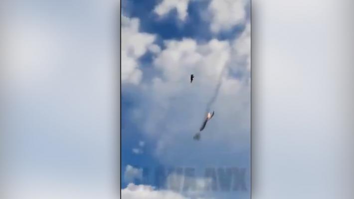 Στιγμιότυπο από το βίντεο που δείχνει το «χτύπημα» στο ρωσικό αεροσκάφος (Πηγή φωτό: Twitter)