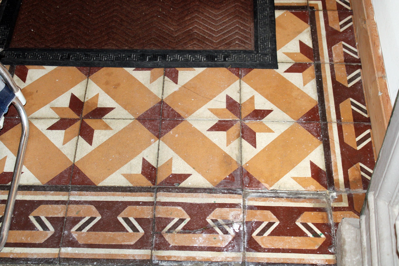 Μια ακόμη μικρή είσοδος σπιτιού στην πόλη της Λευκάδας με παλιά χειροποίητα τσιμεντοπλακίδια με τα εξαίρετα σχέδια και χρώματα που αποπνέουν το «άρωμα» μιας άλλης εποχής.