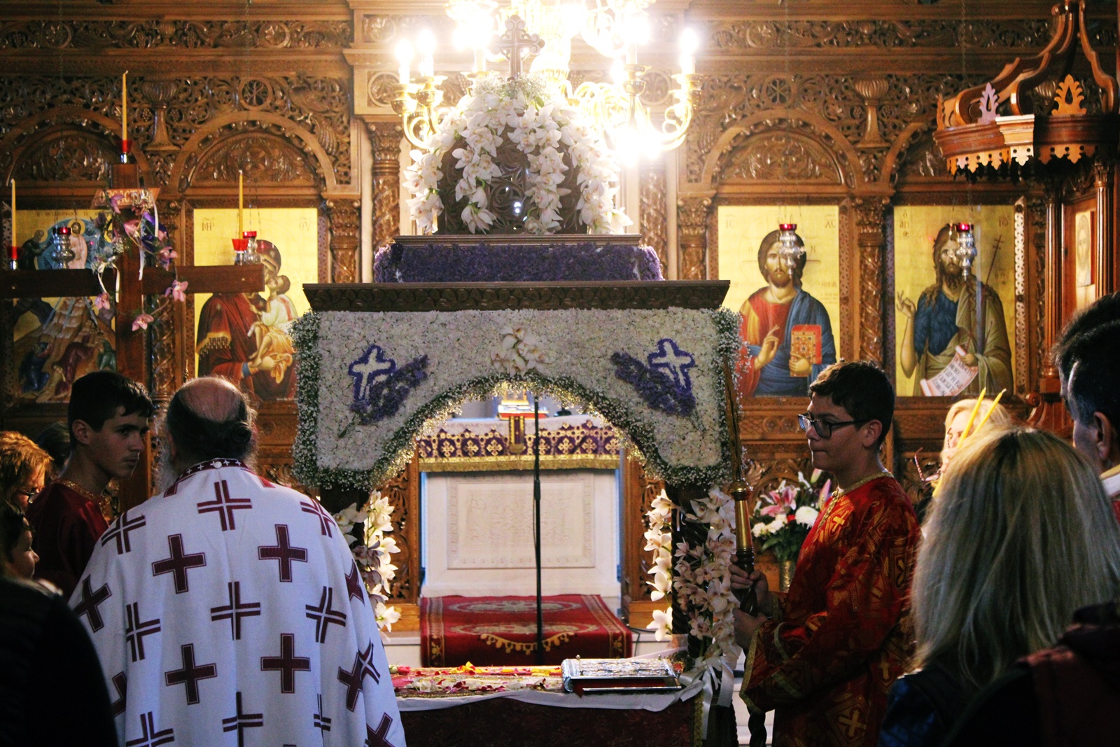 Ο εφημέριος του χωριού π. Σωτήρης Τσάρκος, οι ψάλτες που είχαν καταλάβει και τα δυο ψαλτήρια, αλλά και μικροί και μεγάλοι, έψαλλαν καθ’ όλη τη διάρκεια της Ακολουθίας και της Λιτανείας που ακολούθησε όλοι μαζί τα μελωδικότατα εγκώμια της Μ. Παρασκευής, όπως «Η ζωή εν τάφω», «Άξιον εστί», «Αι γενεαί πάσαι» κ.ά., με μεγάλη κατάνυξη.
