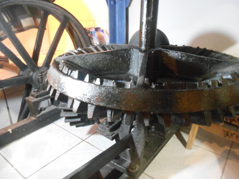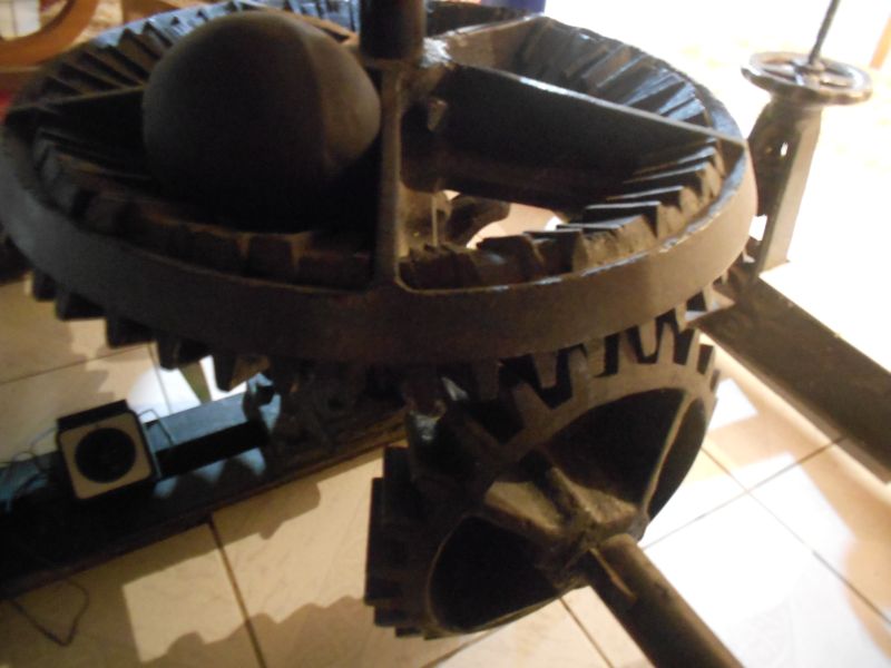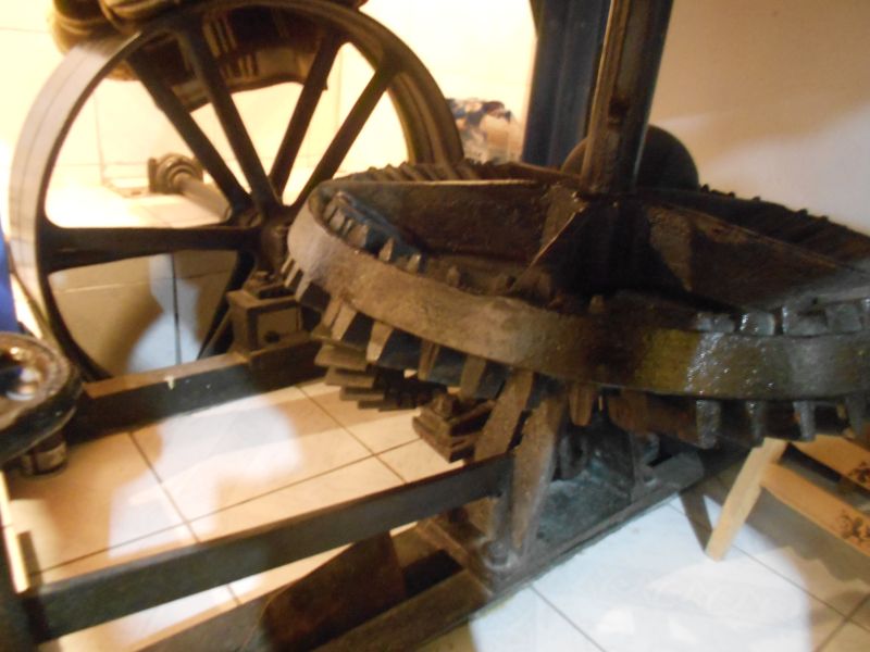 Α… τα δόντια από τα γρανάζια είναι ξύλινα. Από αγριόξυλο, βελανιδιά υποθέτουμε. Φαίνονται στις φωτογραφίες, αν κοιτάξτε προσεκτικά.