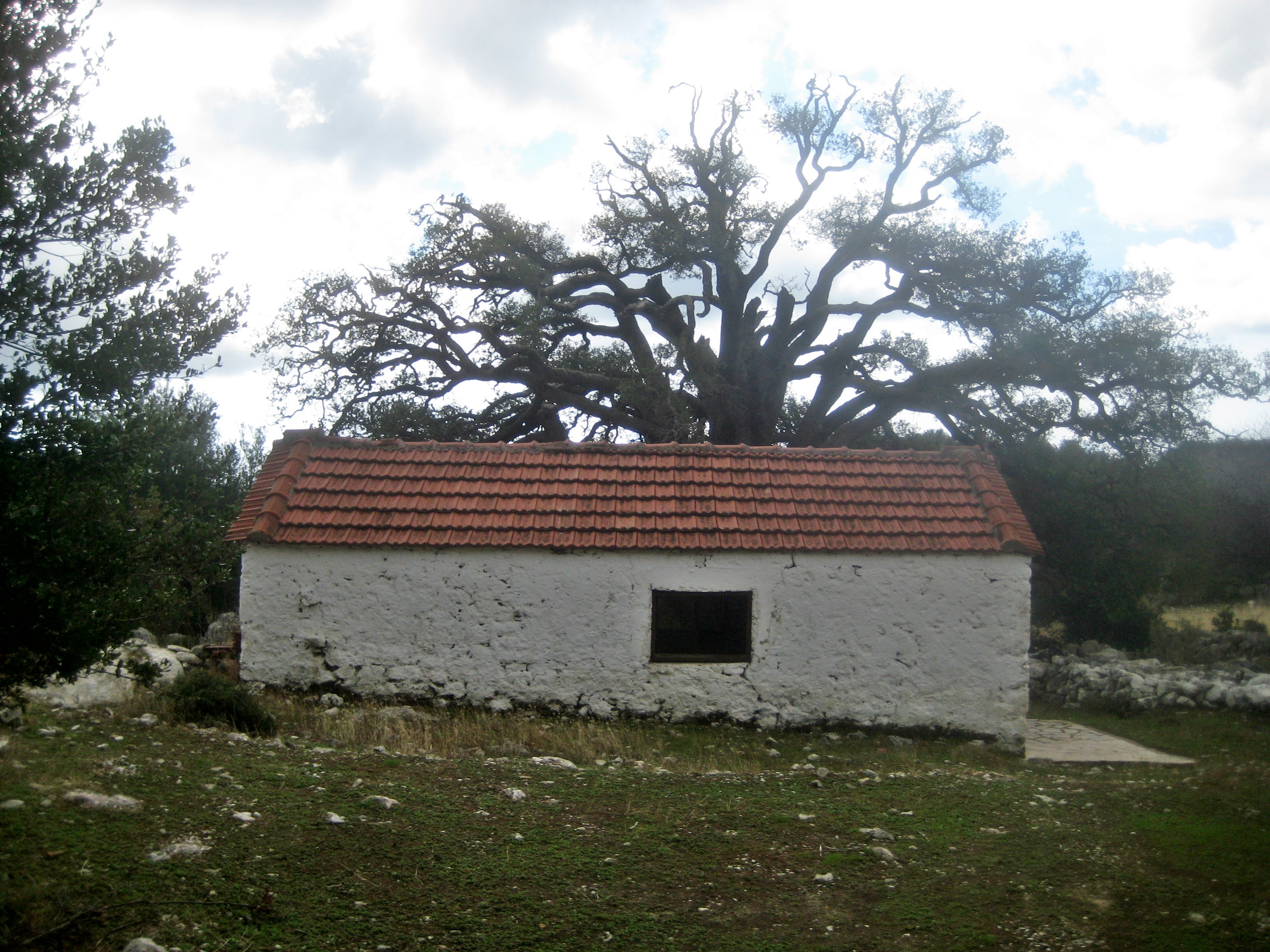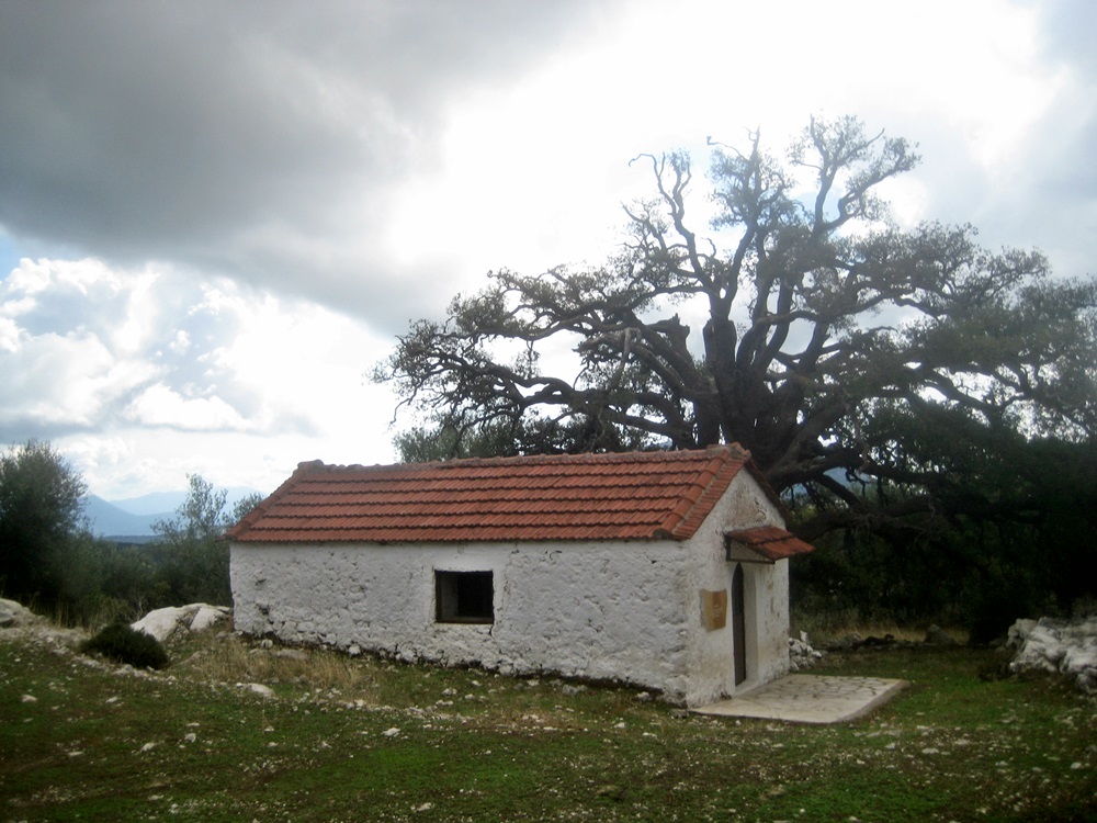 Τώρα, το κύριο που θα θέλαμε να επισημάνουμε δεν είναι αυτό καθαυτό το ξωκλήσι, αλλά τα αιωνόβια δέντρα. Πρώτη φορά βλέπουμε τέτοιο πουρνάρι στα μέρη μας. Ο κορμός του είναι τριπλάσιος σχεδόν, αν όχι μεγαλύτερος, από αυτό που βρίσκεται έξω από την εκκλησία της Παναγίας της Αλεξανδρίτισσας για όσους το ξέρουν.