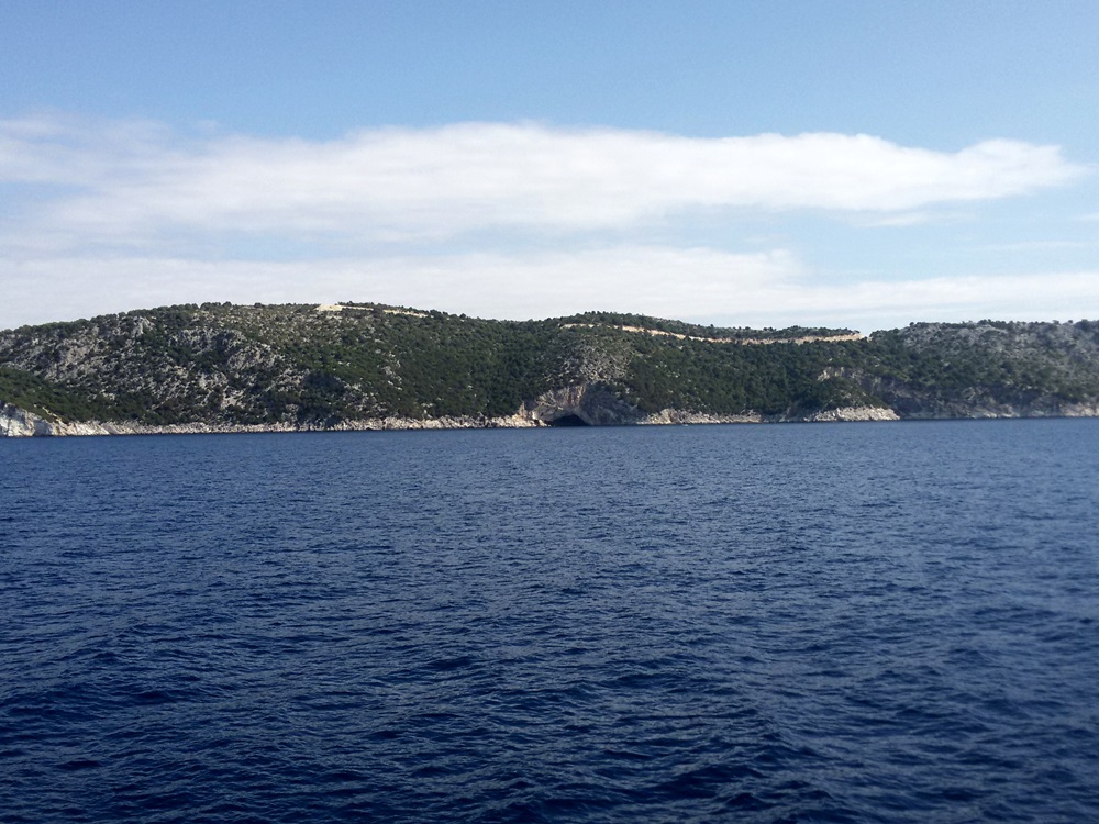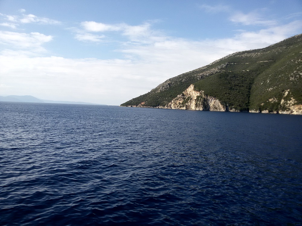 Αφήνουμε πίσω μας το Νυδρί και αφού περάσουμε το στενό μεταξύ Μαδουρής και Αγιά Κυριακής βάζουμε πλώρη για το στενό του Μεγανησιού. Στα δεξιά μας η Λευκάδα και αριστερά το Μεγανήσι. Τα ασβεστολιθικά πετρώματα της περιοχής έχουν ως αποτέλεσμα τη δημιουργία πολλών μικρών και μεγαλύτερων σπηλαίων, με πιο μεγάλα και γνωστά τη σπηλιά του Παπανικολή και τη σπηλιά Giovanni, από τη μεριά του Μεγανησιού.