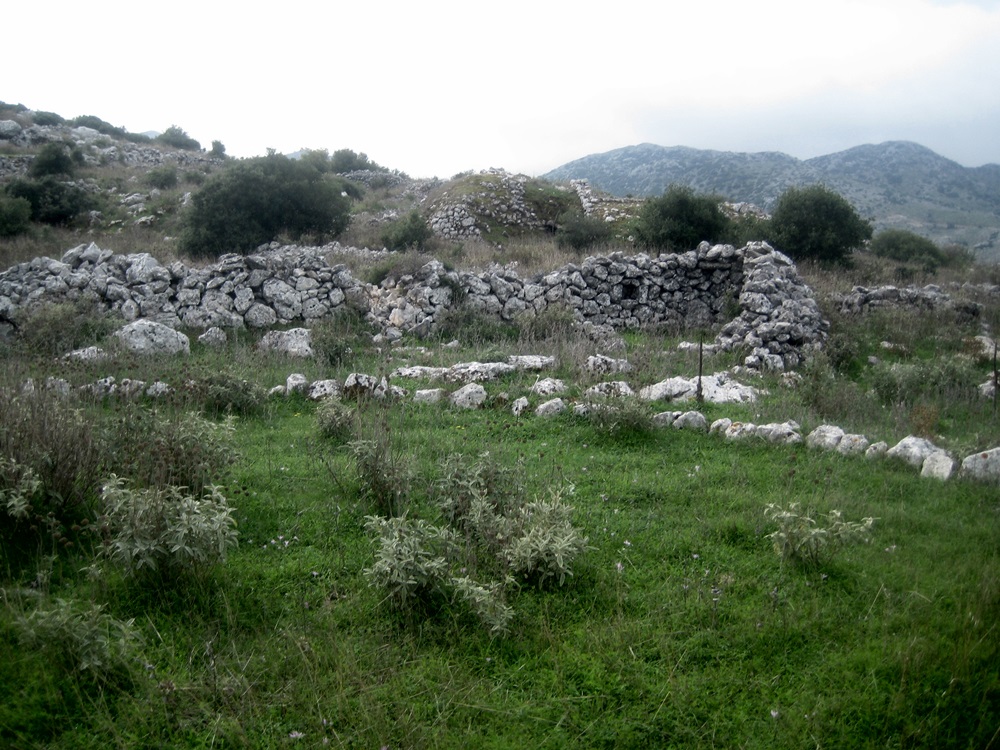 «Στο ανατολικό άκρο του εκτεταμένου οροπεδίου βρίσκονται συγκεντρωμένοι περί τους 75 βόλτους και περίπου 100 αλώνια. Συγκροτήματα βόλτων με εμφανή τοιχοποιία αποτελούμενα από έναν έως τρεις θολωτούς χώρους κατασκευασμένους κατά το εκφορικό σύστημα, συνδεόμενους με αλώνι και υπαίθριους βοηθητικούς χώρους προς εξυπηρέτηση των αγροτικών δραστηριοτήτων. Πρόκειται για ισόγεια χαμηλά κτίσματα, εν μέρει ενσωματωμένα στα πρανή του εδάφους, με άριστη προσαρμογή στο γυμνό τοπίο, του οποίου ουσιαστικά αποτελούν μέρος. Αναπτύσσονται επί δύο συγκλινόντων πρανών. Στο σημείο σύγκλισης, στον αυχένα, από όπου και η πρόσβαση στο οροπέδιο από χωριό της Εγκλουβής, υπάρχει κοινόχρηστος επίπεδος χώρος, με εκκλησία, μύλο και πηγάδια, που προϋπήρχαν της Ενετοκρατίας κατά το χάρτη του Coronelli (1684). Όλη η περιοχή των βόλτων προστατεύεται από την Υπηρεσία Νεωτέρων Μνημείων».