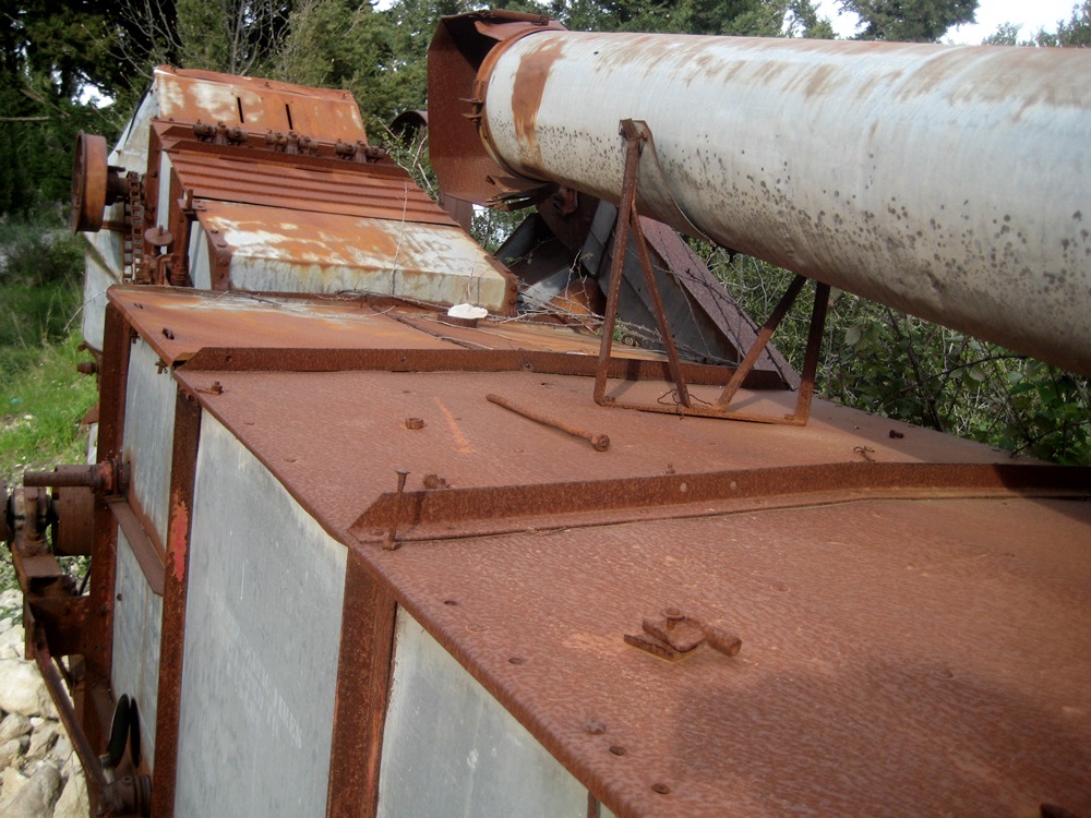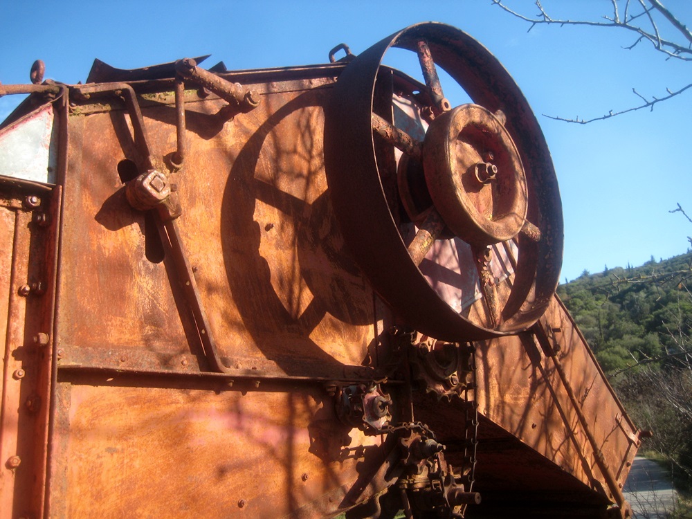 Η σιδερένια ρόδα ,΄στα πλάγια του τρακτέρ απ όπου ξεκινούσε ο κινητήριος ιμάντας της πατόζας, ήταν πλατύς και στέρεος και το όλο σύνολο τρακτέρ και αλωνιστική μηχανή όταν λειτουργούσε είχε ρυθμό σταθερό»