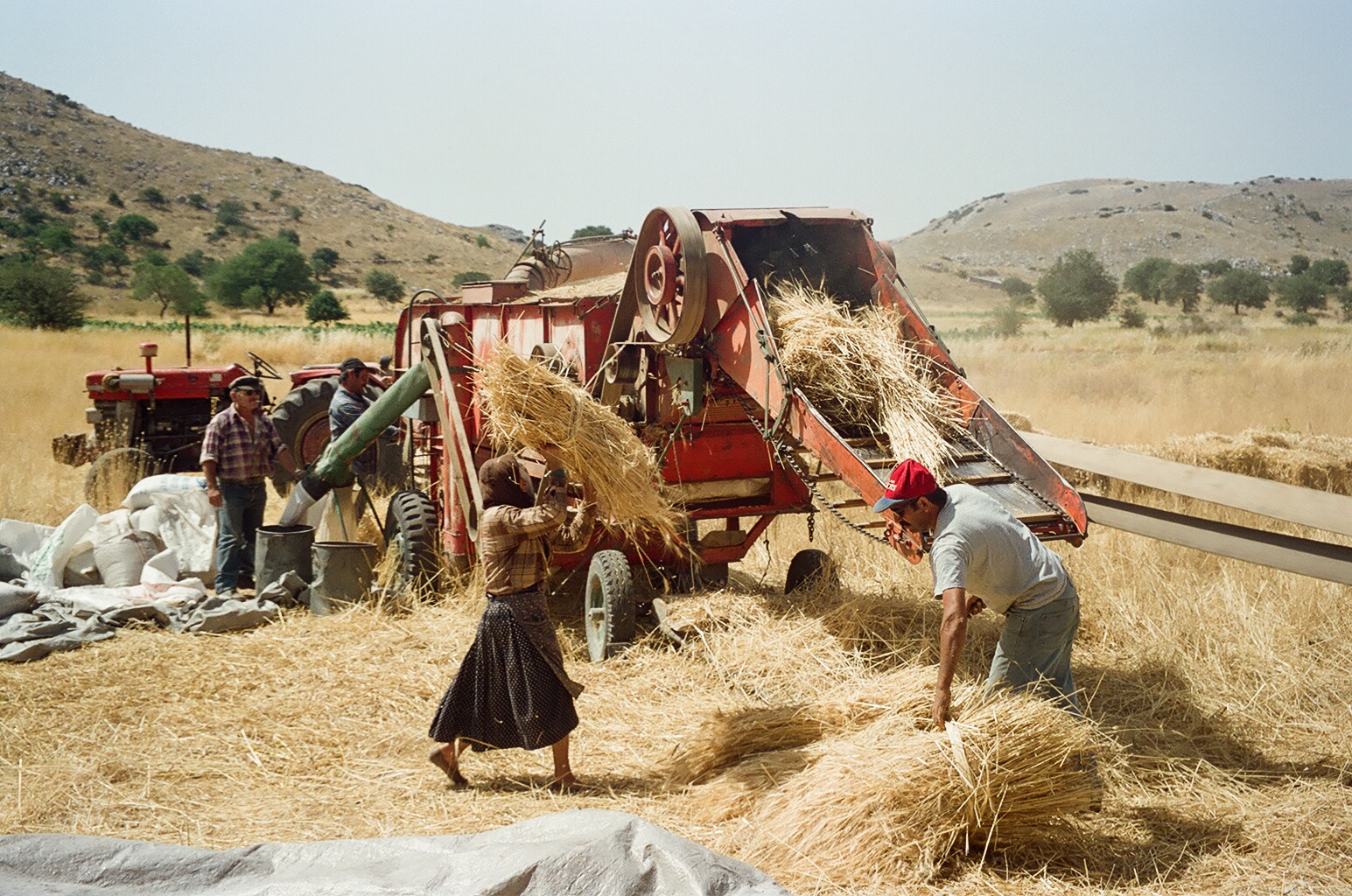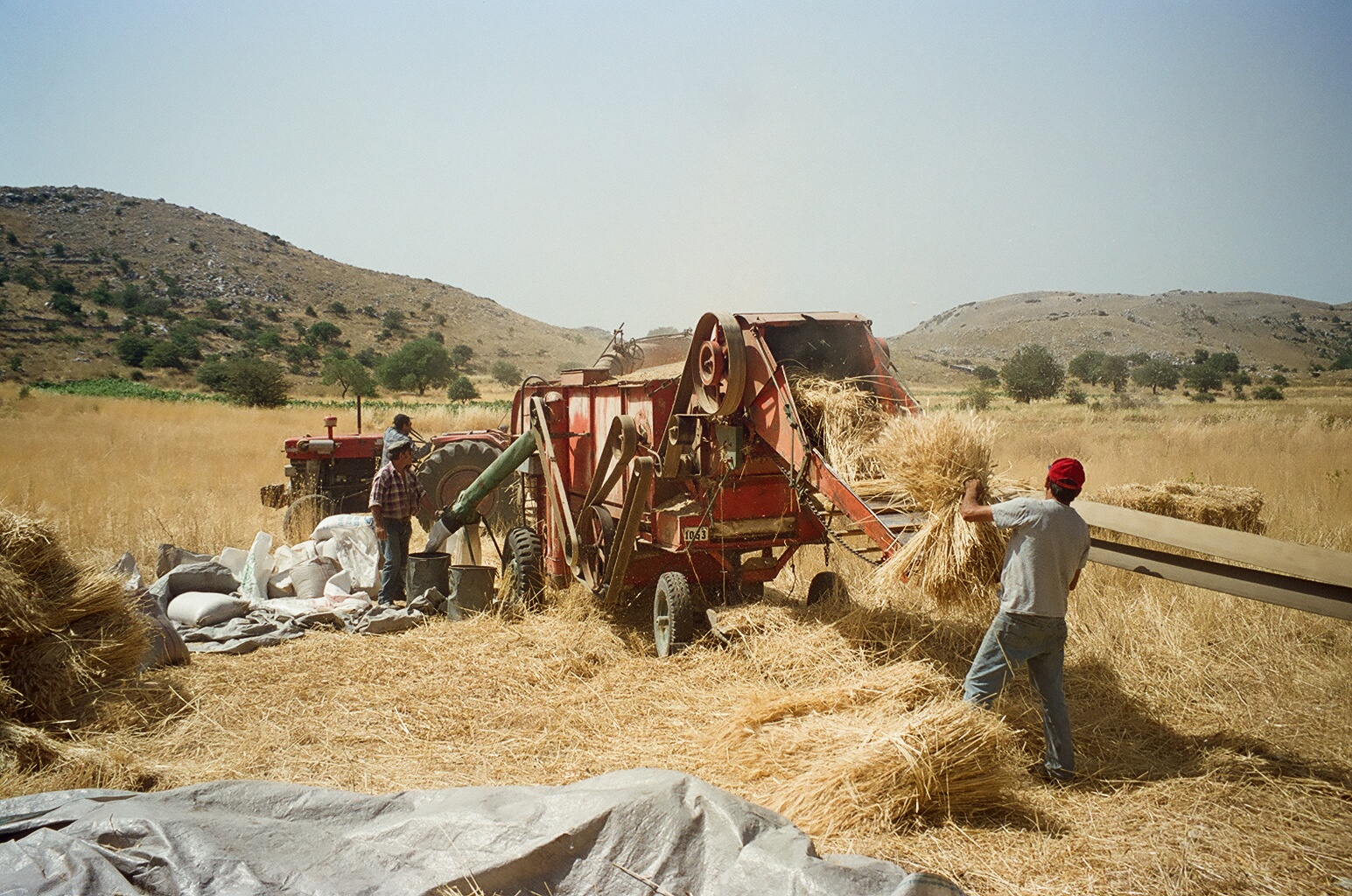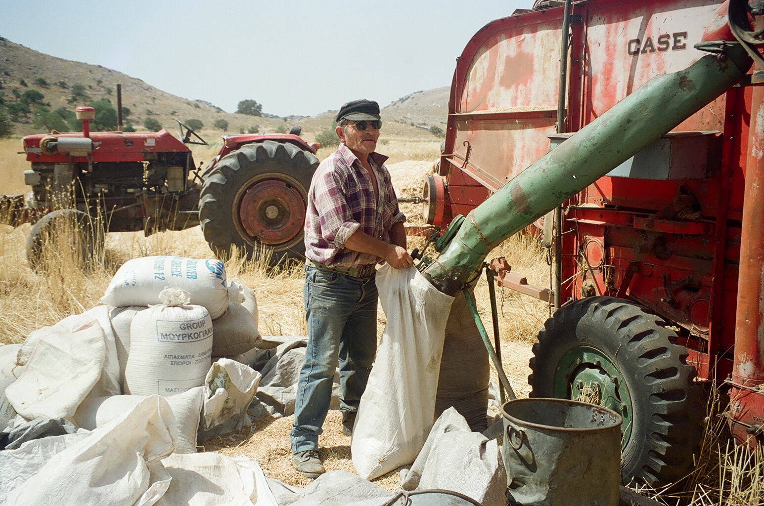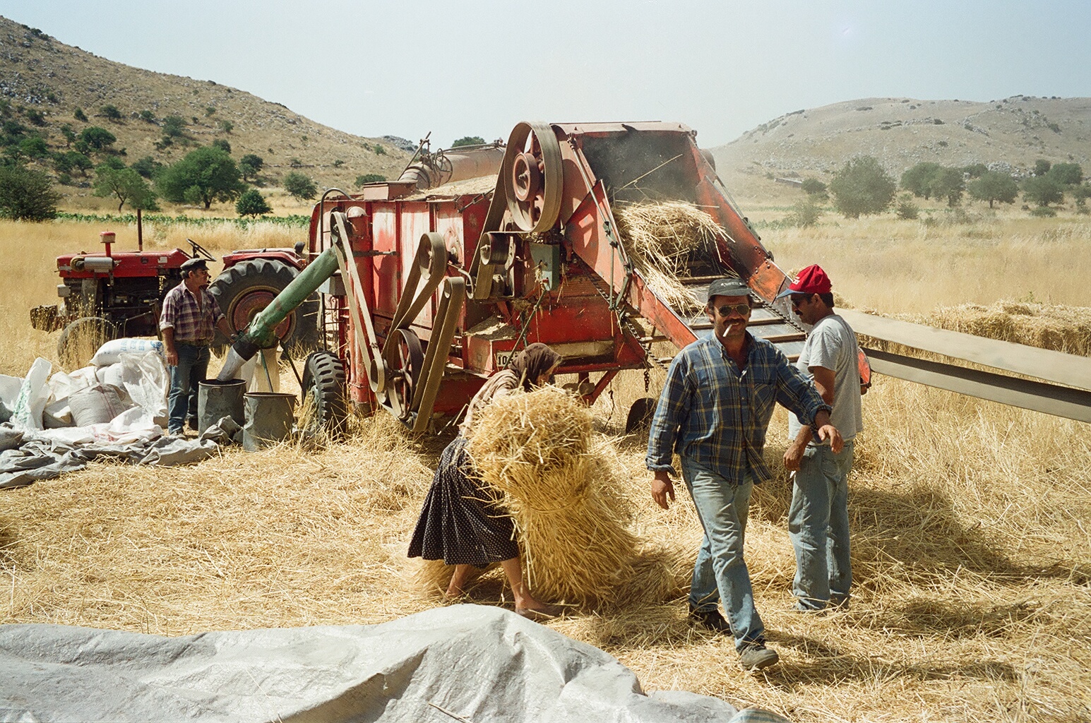 Πολλές φορές ο ήλιος έπεφτε και η μέρα χανόταν και εμείς ήμασταν ακόμη εκεί, στη μέση του χωραφιού, για να τελειώσουμε κι αυτό το αλώνι, να σακιάσουνε οι νοικοκυραίοι τη σοδιά τους και οι γυναίκες να μαζέψουν τα τελευταία σκύβαλα, αγριοβρώμες, αγριοκόκια και κομμένα σιτάρια, τροφή για τις κότες. Βλέπετε τα χρόνια ήταν δύσκολα και τίποτα δεν πήγαινε χαμένο, τότε ίσα που προλαβαίναμε να πάμε τη μηχανή στο επόμενο αλώνι για να ξεκινήσει με το χάραμα και πάλι η δουλειά. Τότε σηκωνόμουν την επόμενη πρωί-πρωί πριν τις έξι, γρασάριζα – καθάριζα τη μηχανή, την αλφάδιαζα, έπρεπε να είναι οπισθόβαρη για να μη μπουκώνει, και όταν ερχόταν ο νοικοκύρης άρχιζε το αλώνισμα.