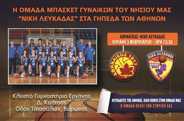Η λευκαδίτικη ομαδα θα ταξιδέψει στην Αθήνα και θα αγωνιστεί στο Κλειστό Γυμναστήριο Εργάνης Δ. Καλτσάς το μεσημέρι της Κυριακής 3 Φεβρουαρίου και ώρα 13:30.