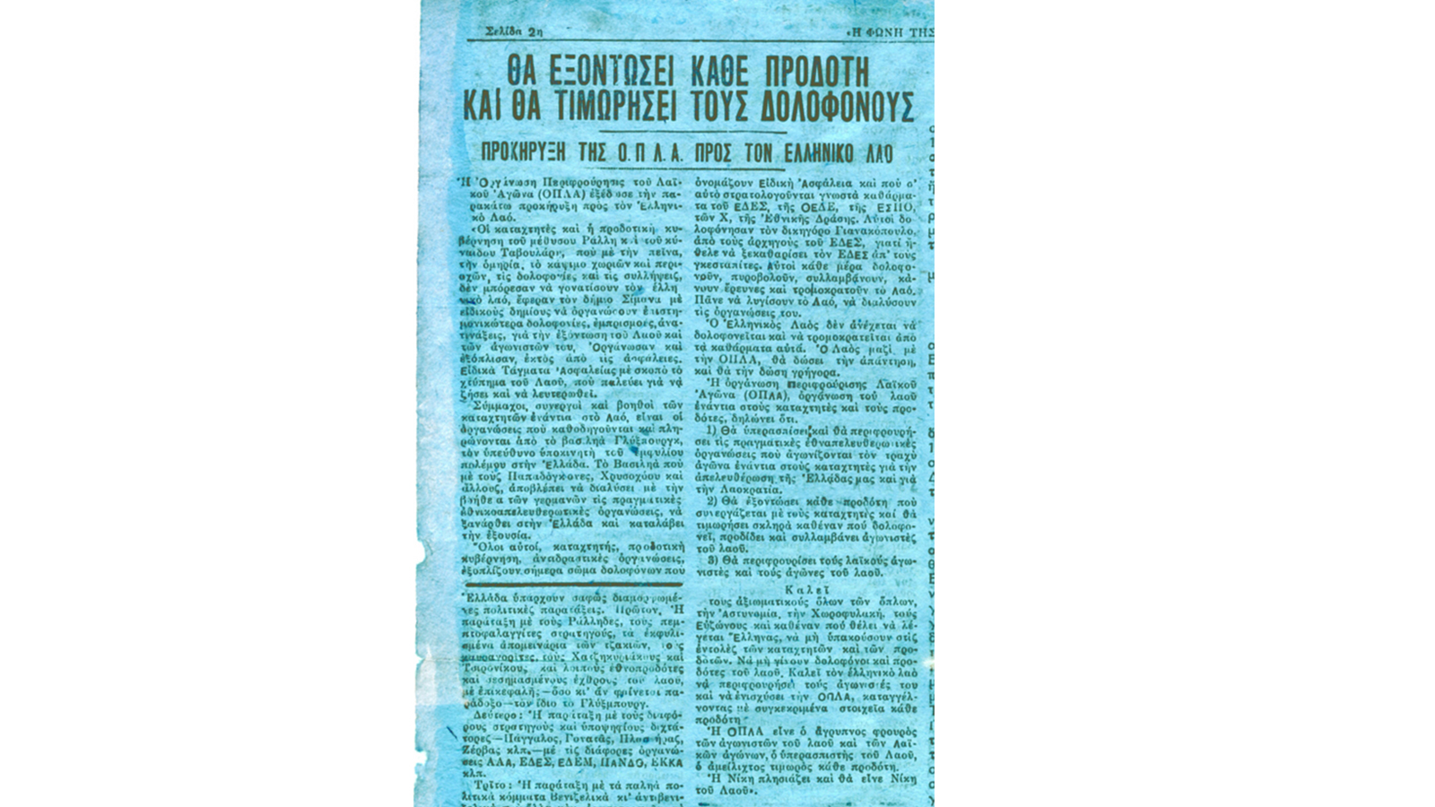 Η εκτέλεση του Ν. Καλύβα από την ΟΠΛΑ