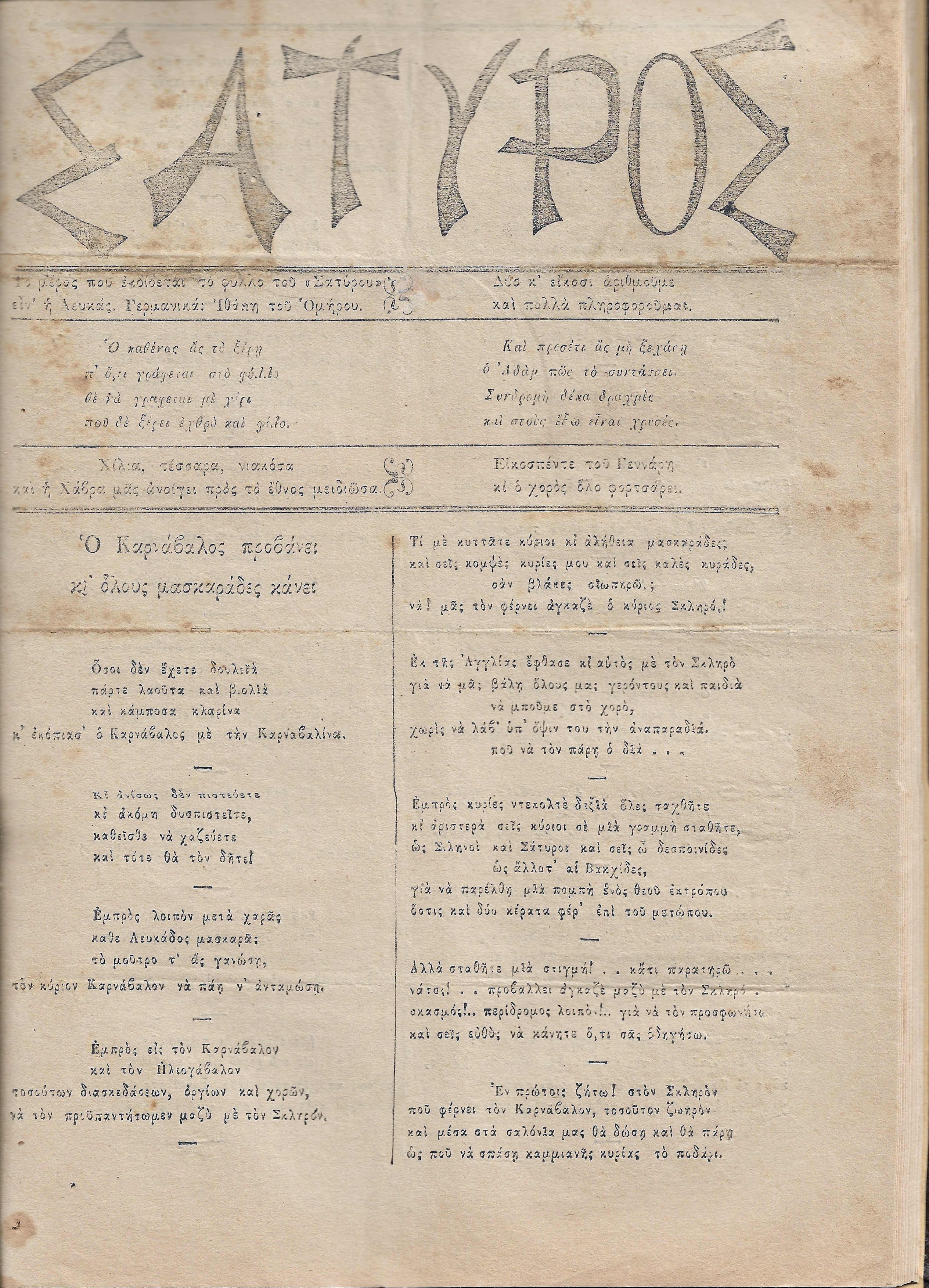 Απόκριες 1904 στη Λευκάδα και η εφημερίδα «Σάτυρος»