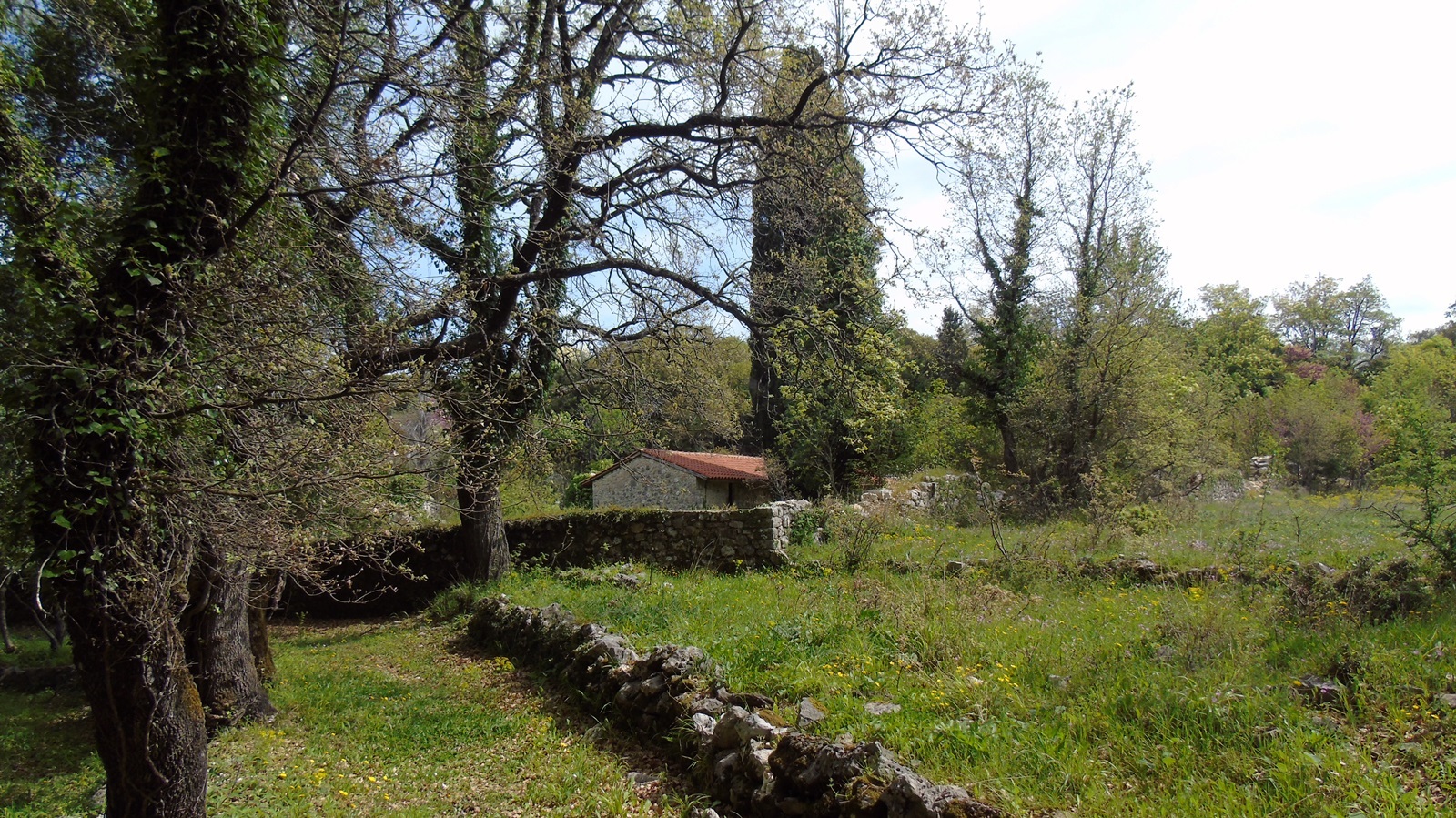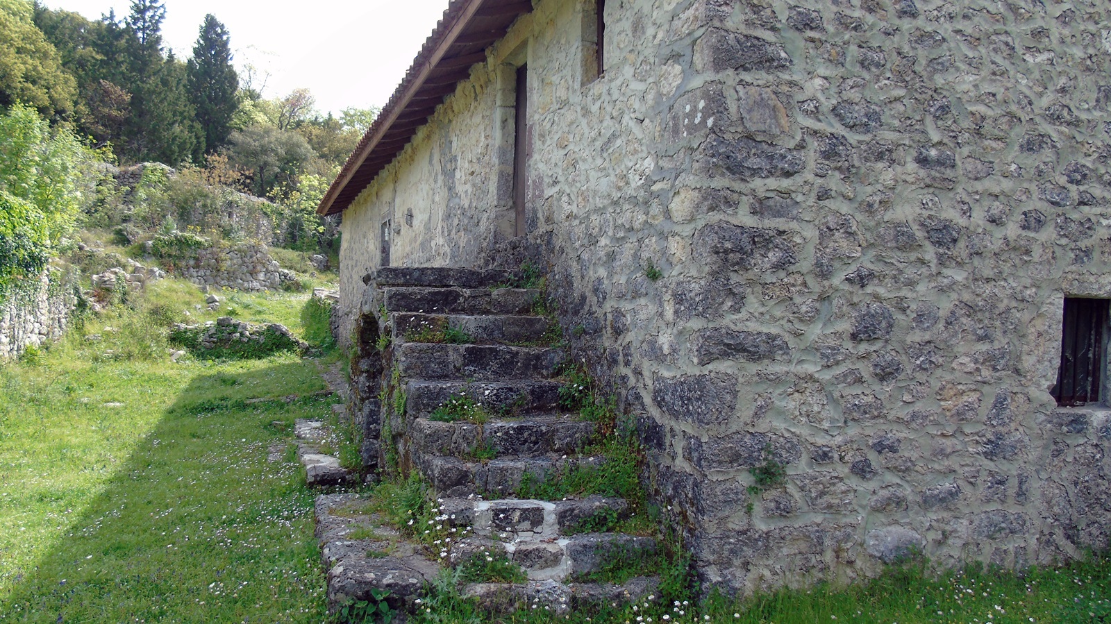 Το καθολικό του μοναστηριού πίσω από την πυκνή βλάστηση