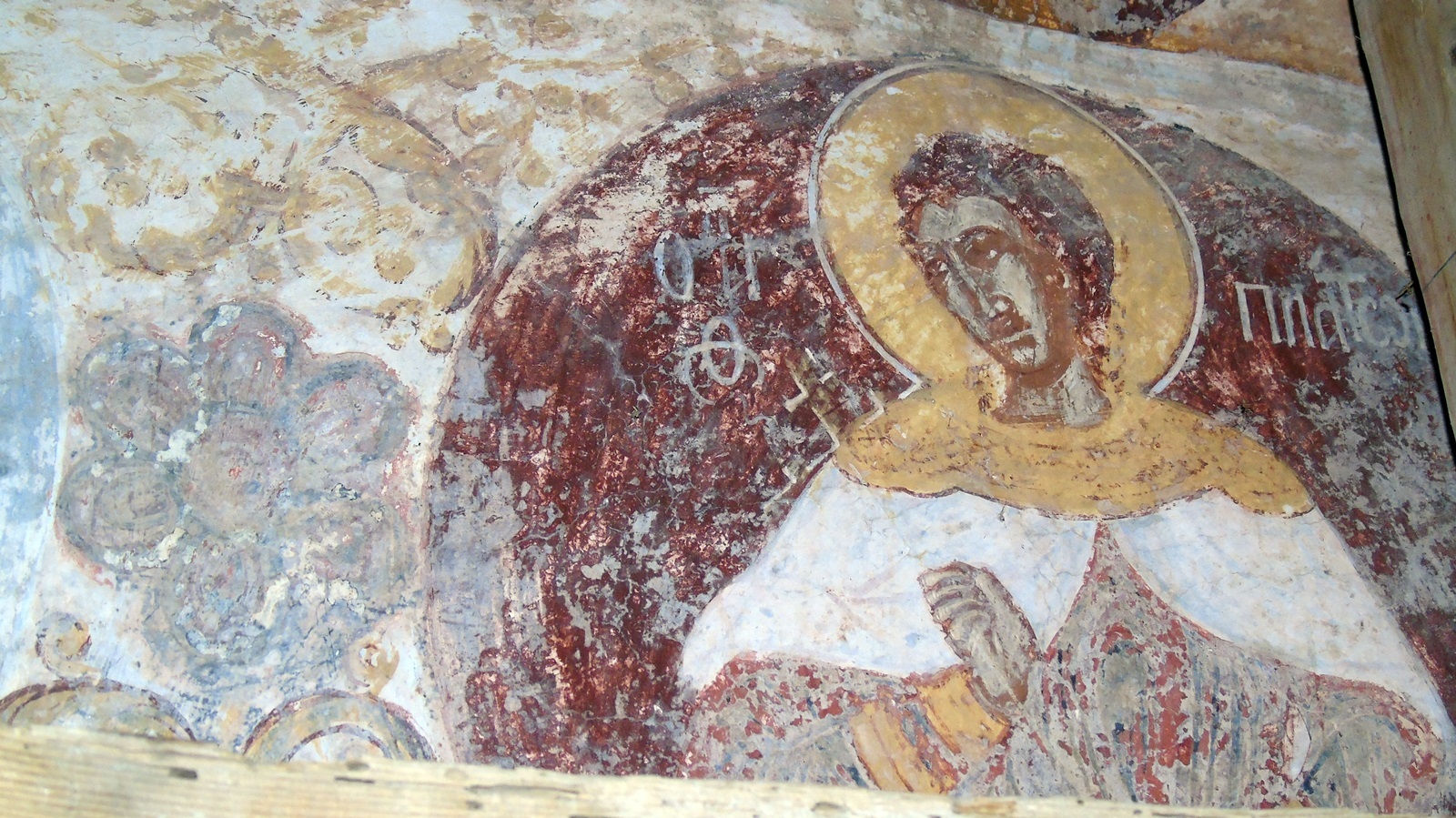 Ο Άγιος Πλάτων στο βόρειο τοίχο του καθολικού