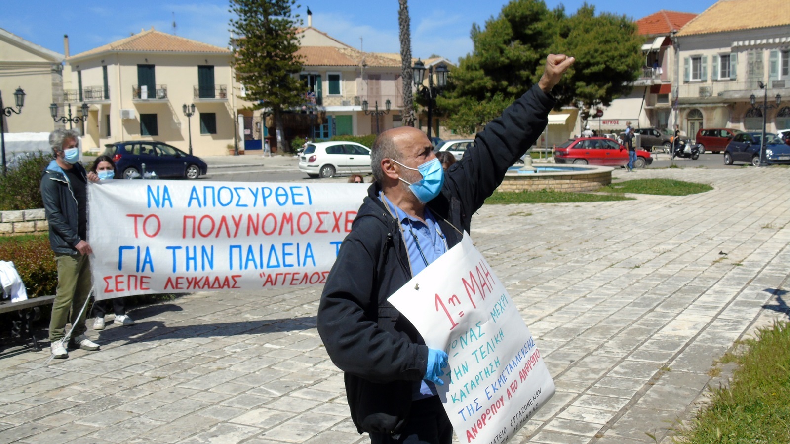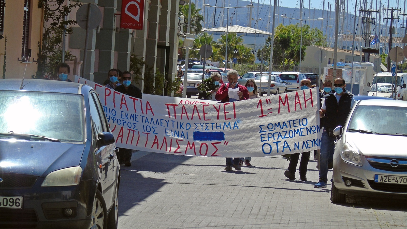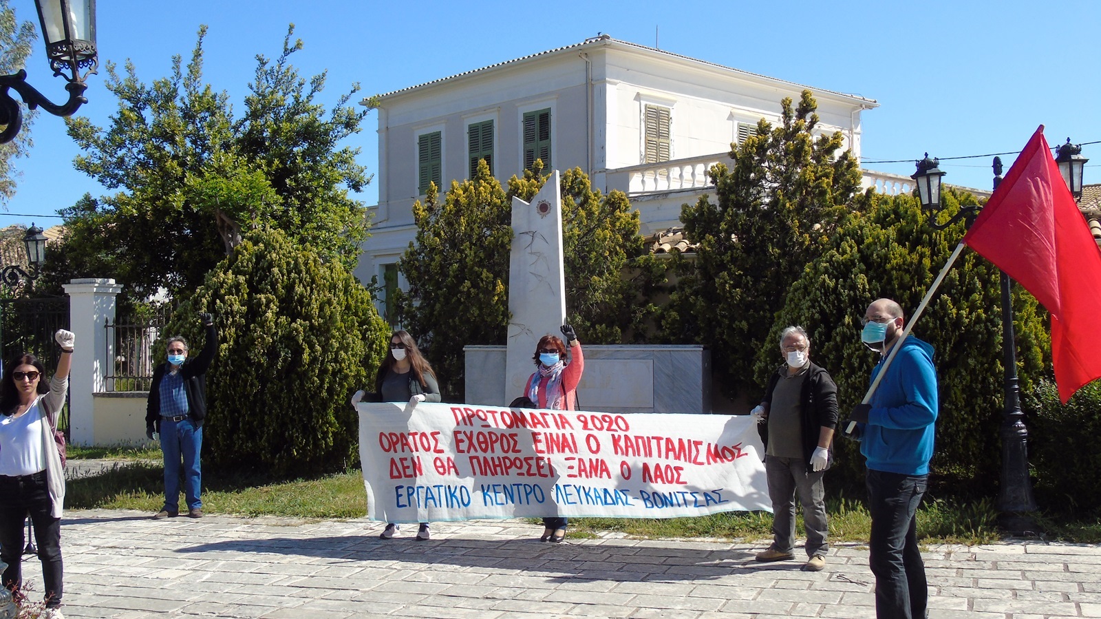 Χωρίς κεντρική πρωτομαγιάτικη συγκέντρωση, όπως γινόταν όλα τα προηγούμενα χρόνια, αλλά με περισσότερες και μικρότερες πρωτομαγιάτικες εκδηλώσεις και με αυστηρή τήρηση των μέτρων προστασίας της υγείας, χρησιμοποιώντας γάντια και μάσκες, καθώς και διατηρώντας τις απαραίτητες αποστάσεις μεταξύ των συμμετεχόντων, λόγω των προληπτικών μέτρων για την προστασία από τον κορονοϊό, τιμήθηκε από τους εργαζόμενους του ιδιωτικού και δημόσιου τομέα η Πρωτομαγιά στην πόλη της Λευκάδας, που μετέφεραν το μήνυμα ότι «ορατός εχθρός είναι ο καπιταλισμός».