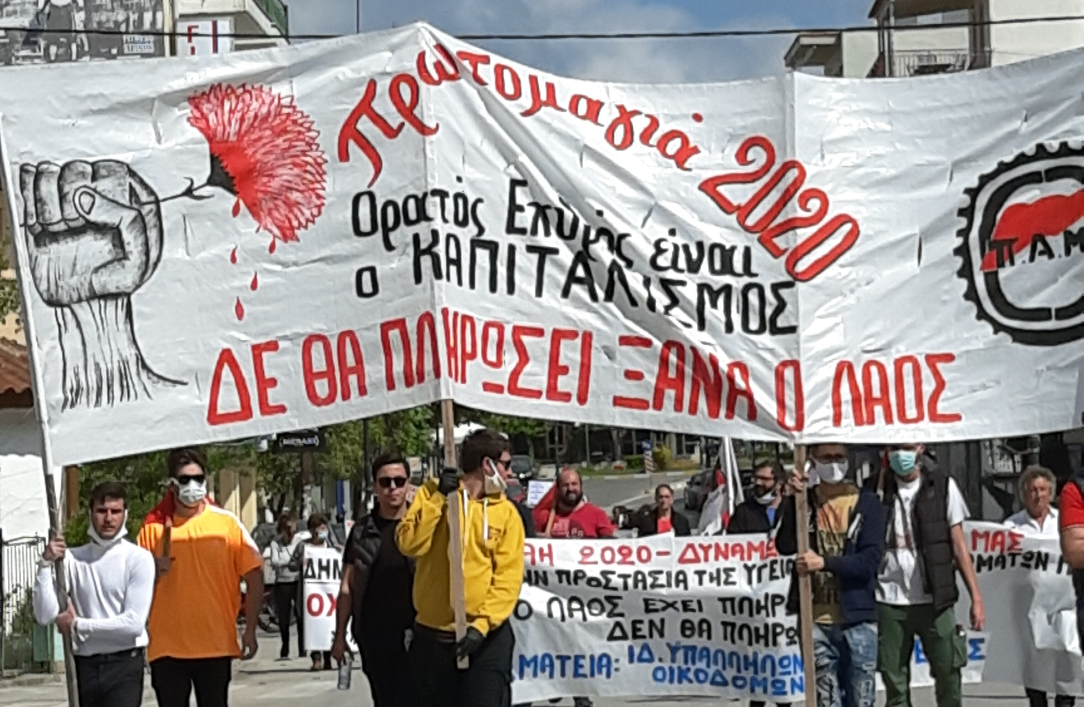 Οι ομιλούντες τόνισαν ότι «η 1η Μάη μας θυμίζει την τεράστια αλήθεια ότι ο πιο θανατηφόρος ιός είναι ο καπιταλισμός. Επιδίωξη του μεγάλου κεφαλαίου, της ΕΕ και των κυβερνήσεών τους είναι τα «έκτακτα» αντεργατικά μέτρα που πάρθηκαν με αφορμή τη πανδημία να παραμείνουν. Ήδη κυβέρνηση και μεγαλοεργοδότες ετοιμάζουν γενίκευση της εκ περιτροπής απασχόλησης, απογείωση της ευελιξίας και της κινητικότητας των εργαζομένων. Μαζί με τις παχυλές χρηματοδοτήσεις στο μεγάλο κεφάλαιο, για τους εργαζόμενους ετοιμάζεται το καθεστώς της μισής δουλειάς – του μισού μισθού ενώ η ανεργία θα εκτιναχτεί πάλι. Η δεκαετής καπιταλιστική κρίση, αλλά και η σημερινή που επιτάχυνε η εξάπλωση του ιού, έδειξε ότι οι μόνοι που είναι χρήσιμοι και αναγκαίοι είναι μόνο οι εργαζόμενοι και το επιστημονικό δυναμικό που δίχως αυτούς δε λειτουργεί τίποτε. Αυτοί που στοιβαγμένοι ο ένας πάνω στον άλλον πάνε για δουλειά, χωρίς μέτρα προστασίας της υγείας τους.