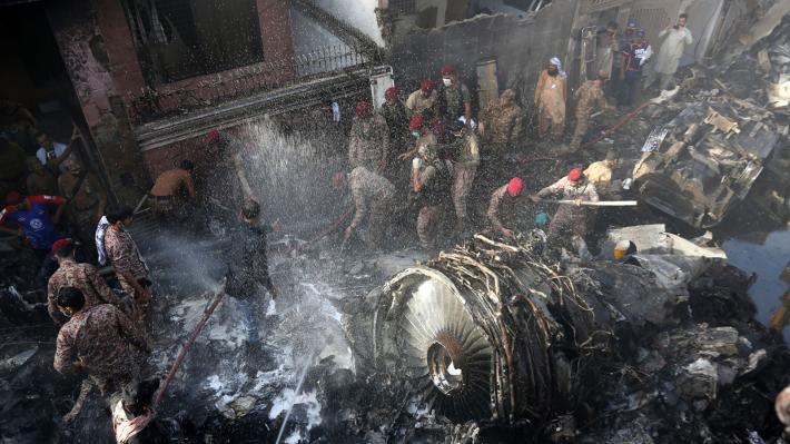 Το αεροπλάνο της εταιρείας «Pakistan International Airlines» (PIA) συνετρίβη πάνω σε σπίτια, ενώ προσέγγιζε στο αεροδρόμιο του Καράτσι. Ο τελευταίος απολογισμός, που κάνει λόγο για 97 νεκρούς και δύο επιζώντες, περιλαμβάνει όλους τους επιβάτες και τα μέλη του πληρώματος του αεροπλάνου, ανακοίνωσαν οι υγειονομικές υπηρεσίες της επαρχίας Σιντ, πρωτεύουσα της οποίας είναι το Καράτσι. Ένα τοπικό νοσοκομείο έκανε εξάλλου λόγο για ανθρώπους που σκοτώθηκαν στο έδαφος.