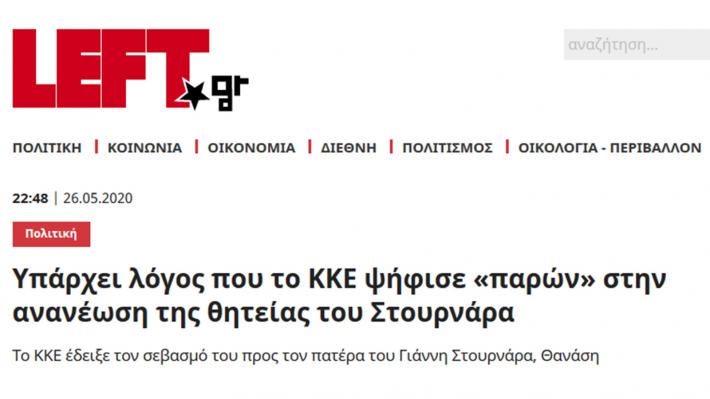 Αξιοποιώντας μία -αγνώστου(;) προελεύσεως- διαρροή που δημοσιεύτηκε στην εφημερίδα «ΤΑ ΝΕΑ» ο μηχανισμός του ΣΥΡΙΖΑ στα μέσα κοινωνικής δικτύωσης έχει κολλημένη τη βελόνα τις τελευταίες 24 ώρες στο «ο λόγος που το ΚΚΕ ψήφισε παρών στην επανεκλογή Στουρνάρα είναι ότι ο πατέρας του ήταν στο ΕΑΜ»! Ναι καλά διαβάζετε… Ακολούθησε το μηχανισμό του ΣΥΡΙΖΑ σχετικό δημοσίευμα στο διαδικτυακό βόθρο της ναζιστικής Χρυσής Αυγής. Σήμερα η σκυτάλη πέρασε σε κάποιες εφημερίδες, όπως η ΕΦΣΥΝ, που κάνει λόγο για «ακατανόητη» στάση του ΚΚΕ.