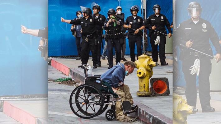 Ένα ακόμη κρούσμα αστυνομικής βίας καταγράφτηκε, αυτή τη φορά στο Λος Άντζελες, με θύμα έναν άστεγο καθηλωμένο σε αναπηρική καρέκλα, ο οποίος πυροβολήθηκε στο πρόσωπο με πλαστική σφαίρα από αστυνομικό.