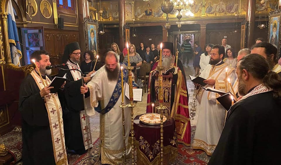 Τό βράδυ τῆς Κυριακῆς ἐψάλη ὁ Μέγας Πανηγυρικός Ἀρχιερατικός Ἑσπερινός χοροστατοῦντος τοῦ Σεβ. Μητροπολίτου μας κ. κ. Θεοφίλου ὁ ὁποῖος κήρυξε καταλλήλως τόν θεῖον λόγον ἀναφερθεῖς στό σεπτό πρόσωπο τῆς Θεομήτορος καί στήν ἱστορία τῆς ἱερᾶς Εἰκόνος τῆς Πεφανερωμένης.