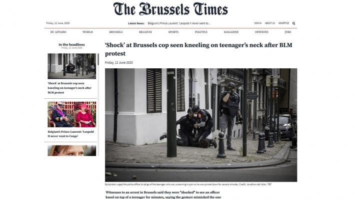 Το στιγμιότυπο δημοσιοποίησε ο αγγλόφωνος ιστότοπος των Βρυξελλών «Brussels Times» και τραβήχτηκε στο περιθώριο της αντιρατσιστικής διαδήλωσης της περασμένης Κυριακής.