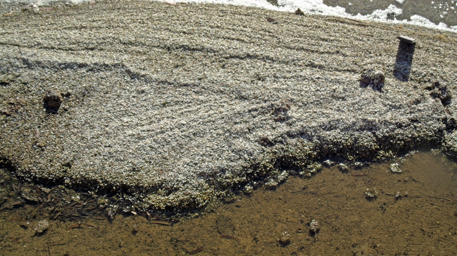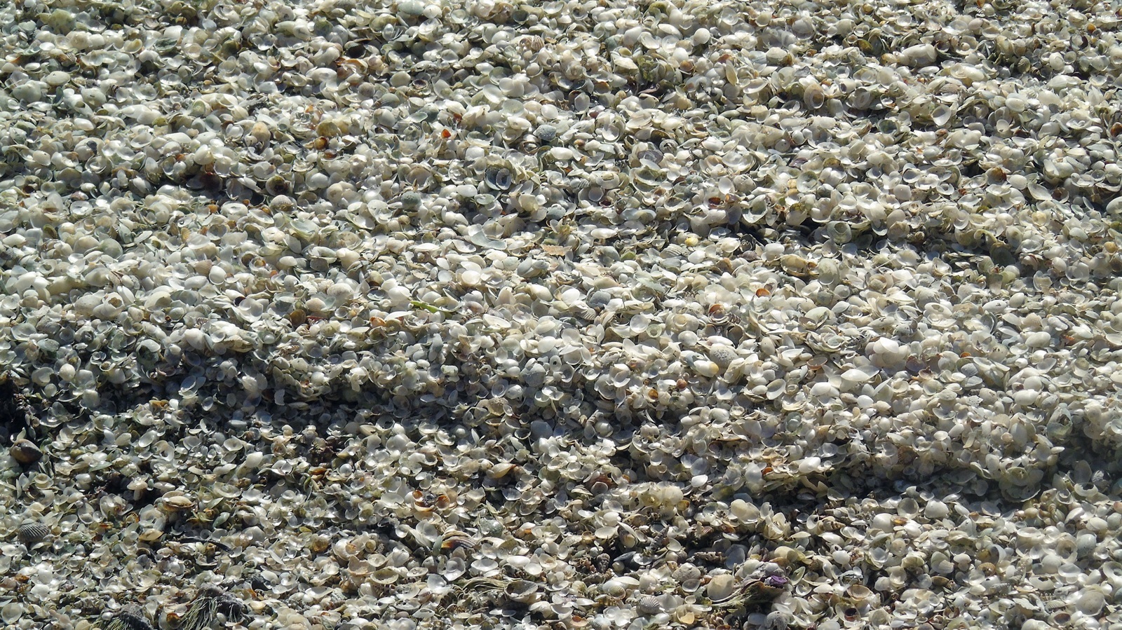 Μιλάμε για πολλές χιλιάδες μικρά όστρακα που έχουν εναποτεθεί σε ορισμένες μεριές της λιμνοθάλασσας δημιουργώντας «μικρές νησίδες».