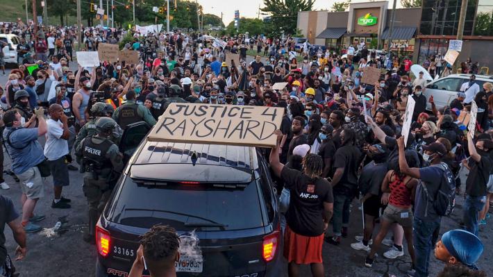 Δεκάδες διαδηλωτές συγκεντρώθηκαν αργά το απόγευμα κοντά στο χώρο του εστιατορίου, νότια του κέντρου της Ατλάντας. Πολλοί απαίτησαν να ασκηθεί ποινική δίωξη εναντίον των αστυνομικών. Κάποιοι διαδηλωτές έκαναν πορεία στη Διαπολιτειακή οδό 75 και σταμάτησαν την κυκλοφορία, πριν η αστυνομία, χρησιμοποιώντας πολλά περιπολικά, να τους εμποδίσει και να αποκαταστήσει την κίνηση των οχημάτων. Άλλοι έβαλαν φωτιά στο εστιατόριο. Πλάνα που μεταδόθηκαν από τοπικούς τηλεοπτικούς σταθμούς κατέγραψαν ότι το εστιατόριο καιγόταν, προτού φθάσουν επιτόπου οχήματα της πυροσβεστικής και κατασβέσουν την πυρκαγιά, προστατευόμενοι από αστυνομικούς που σχημάτισαν αλυσίδα. Το κτίριο, δίπλα σε πρατήριο καυσίμων, είχε μετατραπεί ήδη σε αποκαΐδια.