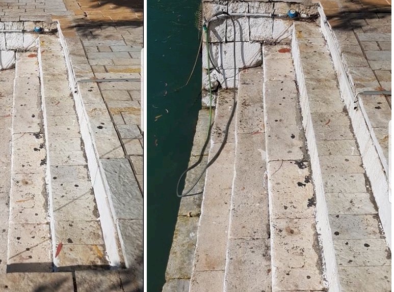 Οι παλιές σκάλες με σκαλοπάτια κάθετα στο κρηπίδωμα που πρόκειται να αντικατασταθούν