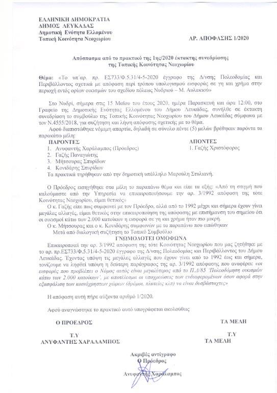 3. Την ομόφωνη γνωμοδότηση της Κοινότητας Νεοχωρίου