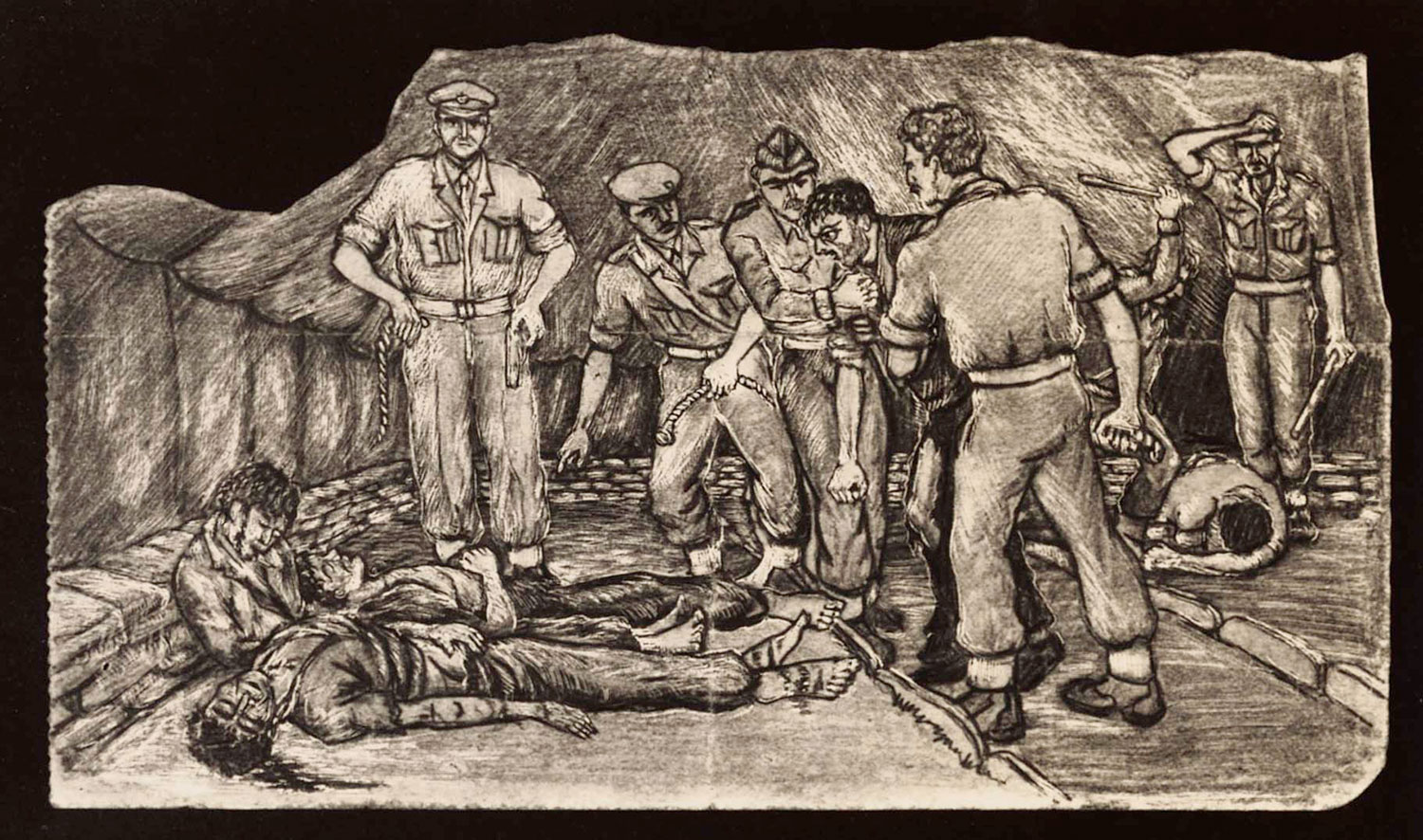Στη Μακρόνησο, μέσα σ’ εκείνες τις συνθήκες, φιλοτέχνησε σχεδόν χωρίς χέρια την πρώτη του ξυλογραφία. Εκεί, στο κάτεργο εξόντωσης, άνοιξε ένας νέος δρόμος, αυτός του λαϊκού, του επαναστάτη καλλιτέχνη, που με τα τσακισμένα χέρια, μαζί με λεπτά προσωπικά συναισθήματα και ευαισθησίες, έμελλε να εκφράσει με βάθος και ταλέντο την ψυχή και την πνοή των λαϊκών αγώνων, των αγώνων του ΚΚΕ.