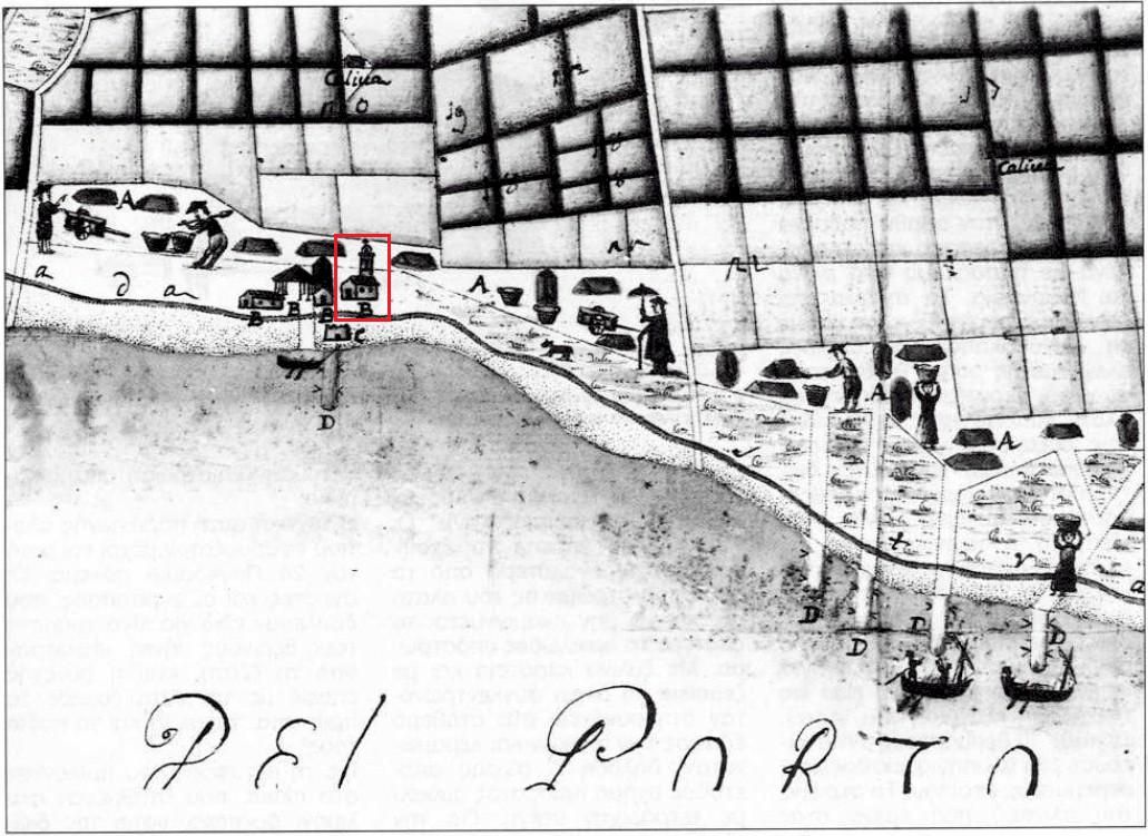 Ο ναός του Αγίου Παντελεήμονα σε χάρτη του Spiridion Morazzo το 1740