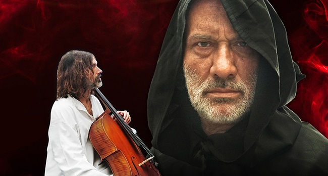 Μαζί του επί σκηνής ο εξαιρετικός μουσικός Σταύρος Παργινός με το βιολοντσέλο του, στον βουβό ρόλο του Ιησού Χριστού!