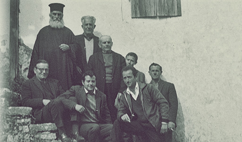 Στο Μοναστήρι του Αγίου Γεωργίου Σκάρων (σκάλα Ηγουμενείου). Όρθιος στο κέντρο ο Ξεν. Βρεττός
