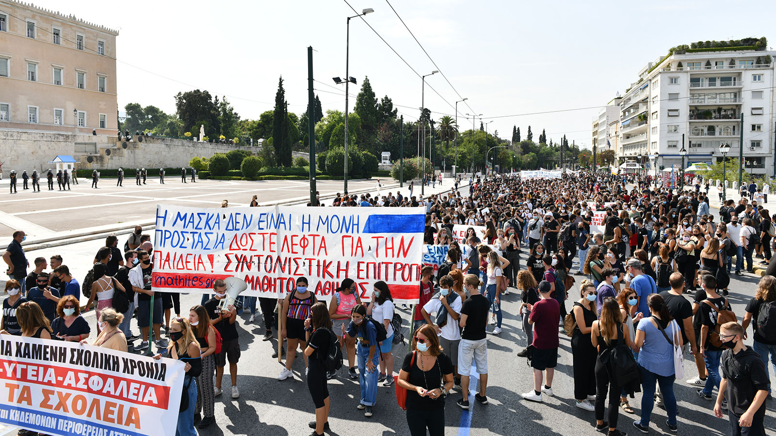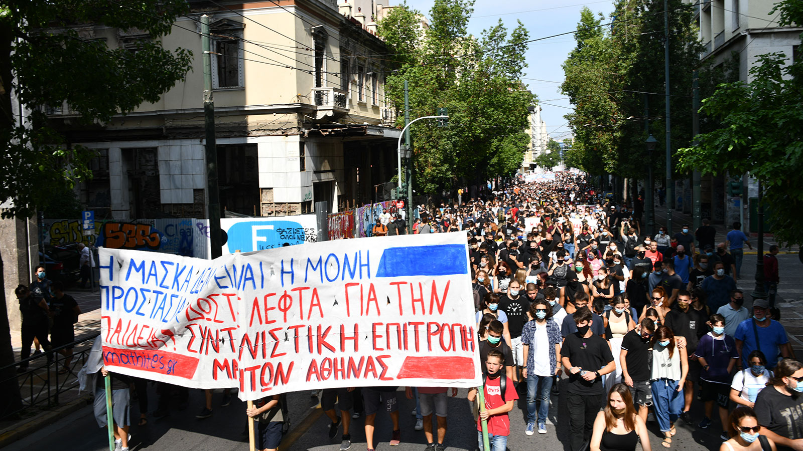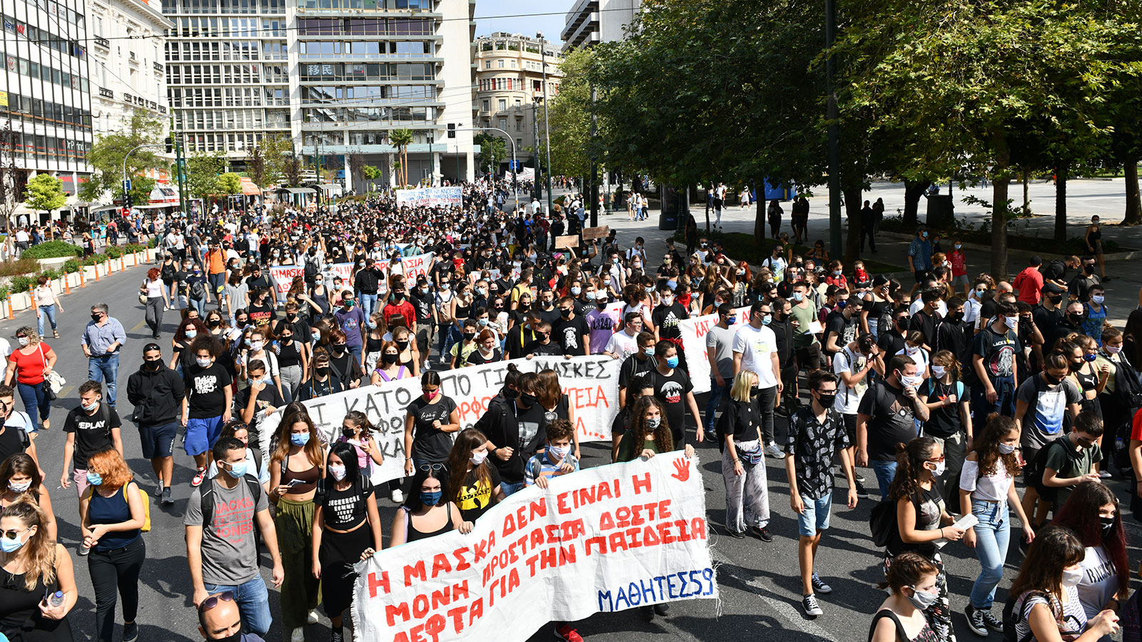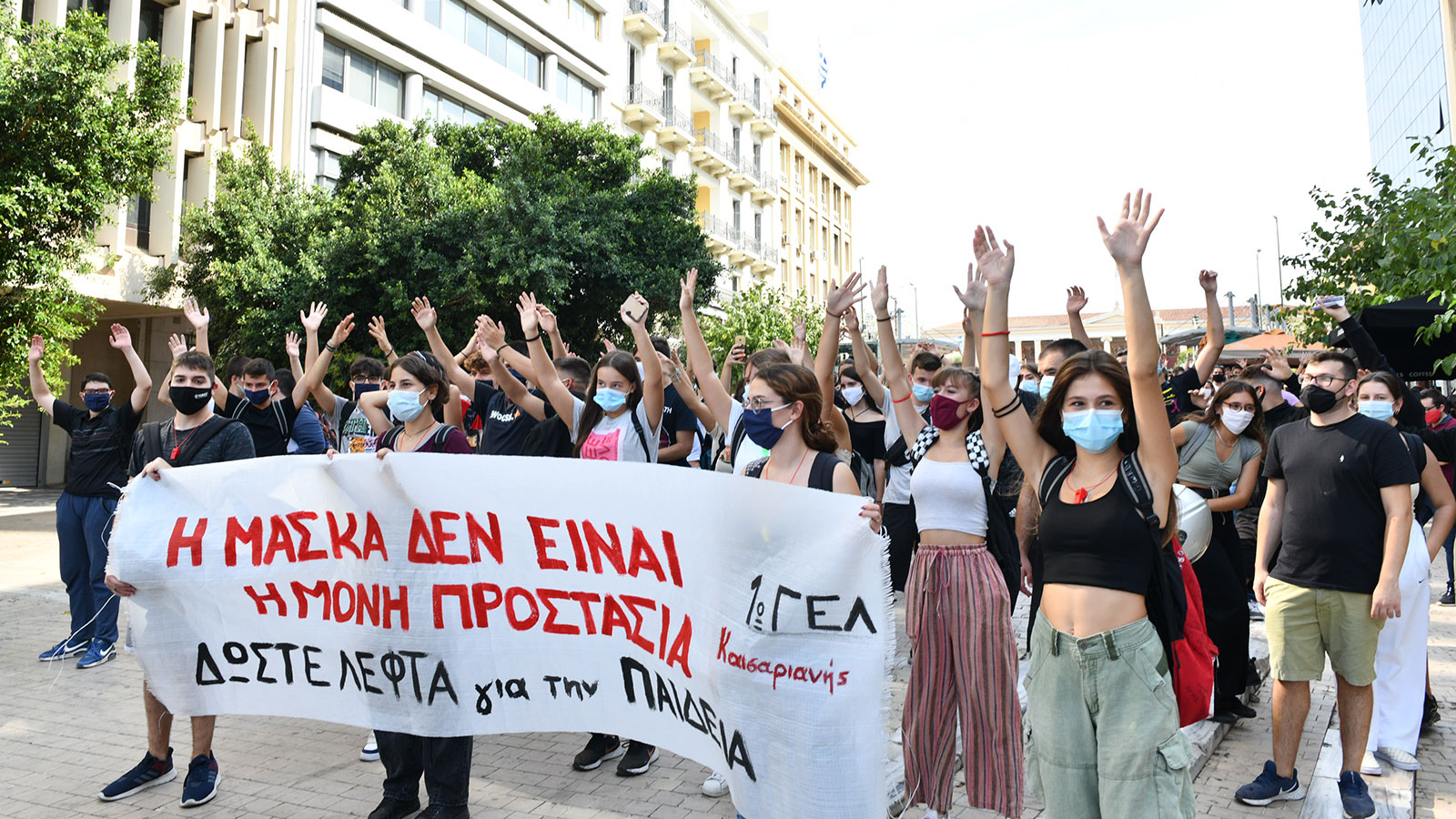 «Κάτω από τη μάσκα έχουμε φωνή, μόρφωση και υγεία για κάθε μαθητή» και «χωρίς καθηγητές σε αίθουσες κλουβιά- αυτό δεν είναι μέτρα, είναι μια τρολιά!» βροντοφώναξαν οι μαθητές της Αθήνας στο μαζικό συλλαλητήριο που διοργάνωσαν ύστερα από το κάλεσμα της Συντονιστικής Επιτροπής Μαθητών.