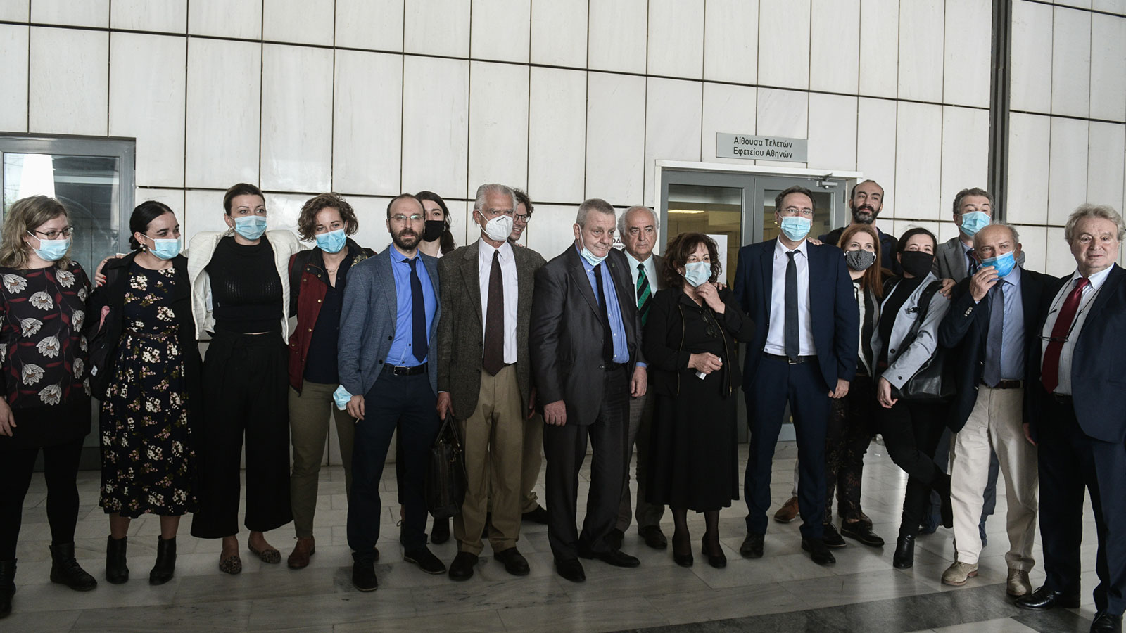Η Μάγδα Φύσσα με τους δικηγόρους των θυμάτων της Χρυσής Αυγής (Πηγή: Eurokinissi)