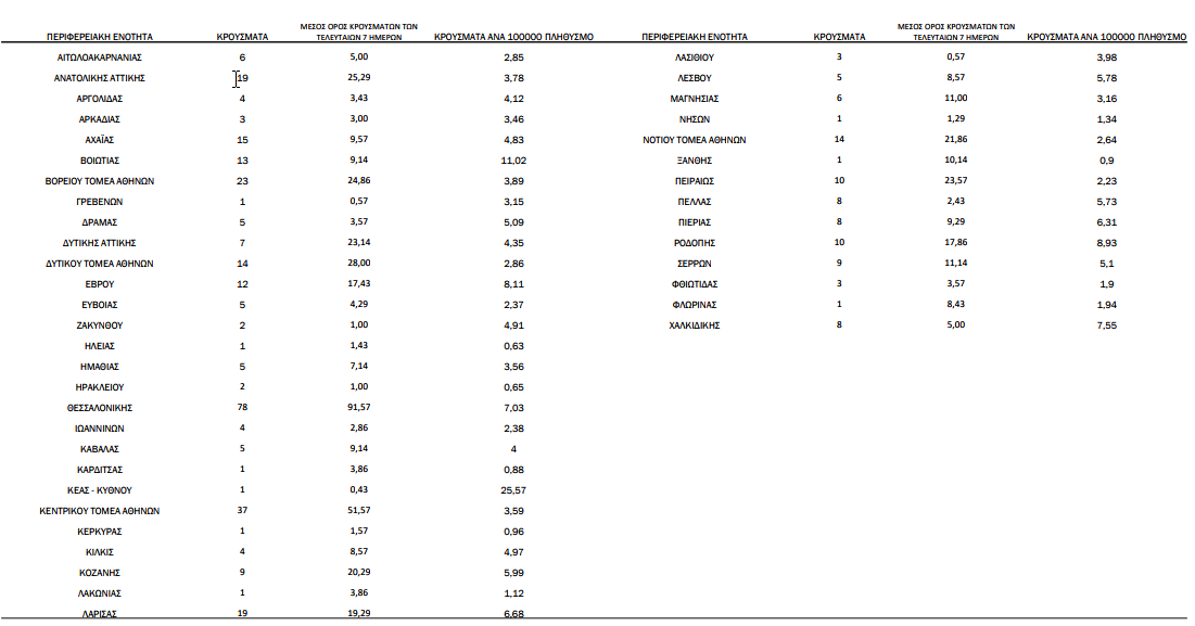 Δείτε στον παρακάτω πίνακα την γεωγραφική κατανομή των κρουσμάτων