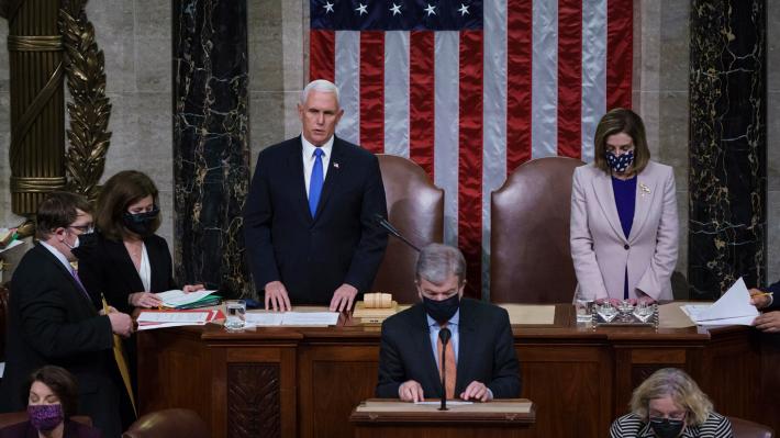 Ο αντιπρόεδρος των ΗΠΑ Μάικ Πενς επικύρωσε την ψήφο των 306 μεγάλων εκλεκτόρων υπέρ του Τζο Μπάιντεν, έναντι 232 για τον Ντόναλντ Τραμπ, κατά την διάρκεια της επεισοδιακής συνεδρίασης της Γερουσίας και της Βουλή των Αντιπροσώπων, η οποία διακόπηκε από την εισβολή των οπαδών του Τραμπ στο Καπιτώλιο.