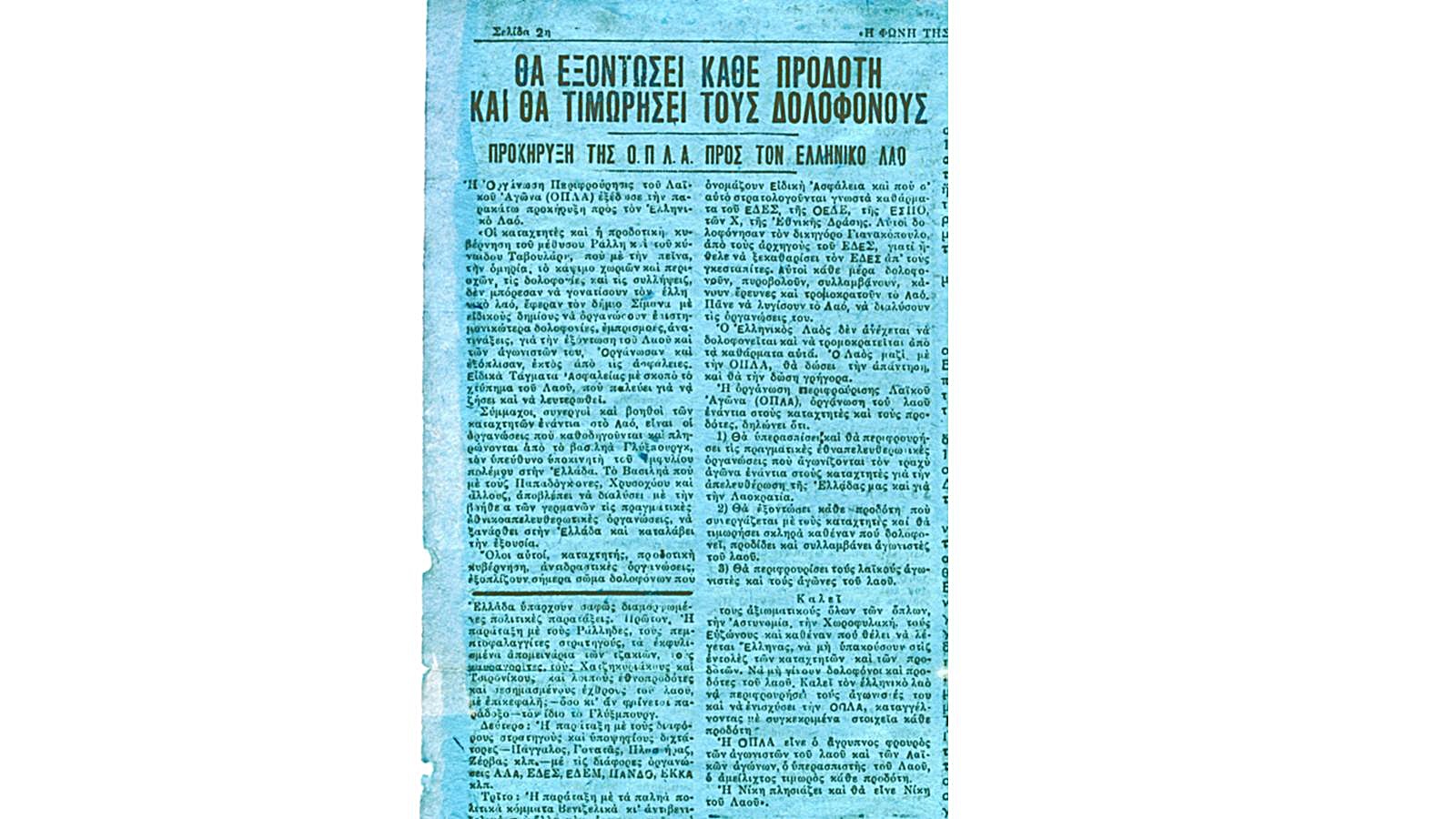 Προκήρυξη της ΟΠΛΑ προς τον Ελληνικό λαό