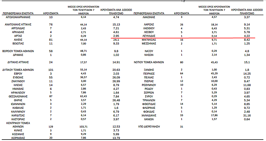 Δείτε στον παρακάτω πίνακα την γεωγραφική κατανομή των κρουσμάτων
