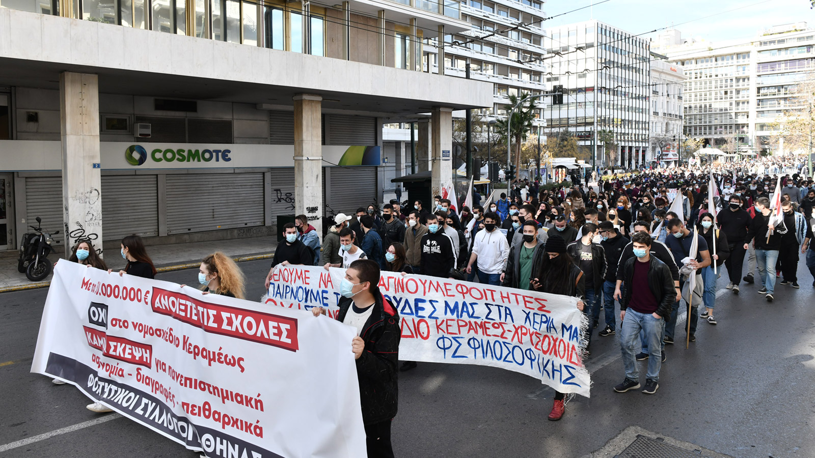 Με αποφασιστικότητα, μαζικότητα, μαχητικότητα, χιλιάδες φοιτητές και μαζί τους εκπαιδευτικοί, γονείς, μαθητές κι εργαζόμενοι διαδήλωσαν για άλλη μια φορά ενάντια στο κατάπτυστο νομοσχέδιο έντασης της καταστολής και των φραγμών στη μόρφωση που συζητιέται στη Βουλή.
