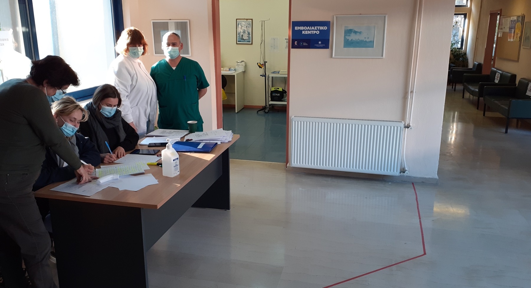 Σήμερα πραγματοποιήθηκαν 37 εμβολιασμοί, ενώ 38 ήταν συνολικά τα προγραμματισμένα ραντεβού. Παράλληλα κλείνεται και το ραντεβού για τη 2η δόση του εμβολίου της Astra Zeneca που θα γίνει τον μήνα Μάιο.