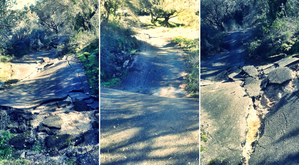Εφιστάται η προσοχή αφού η υποχώρηση του οδοστρώματος κάνει τη διέλευση των οχημάτων αδύνατη.