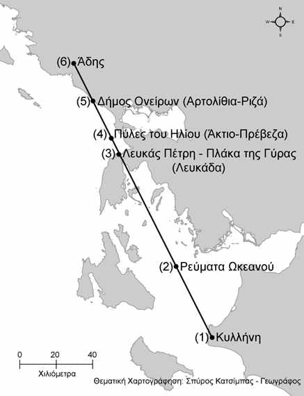 (Σημ.: Στο θεματικό χάρτη, που συνοδεύει το κείμενο, αποδίδεται η πορεία του ψυχοπομπού Ερμή.)