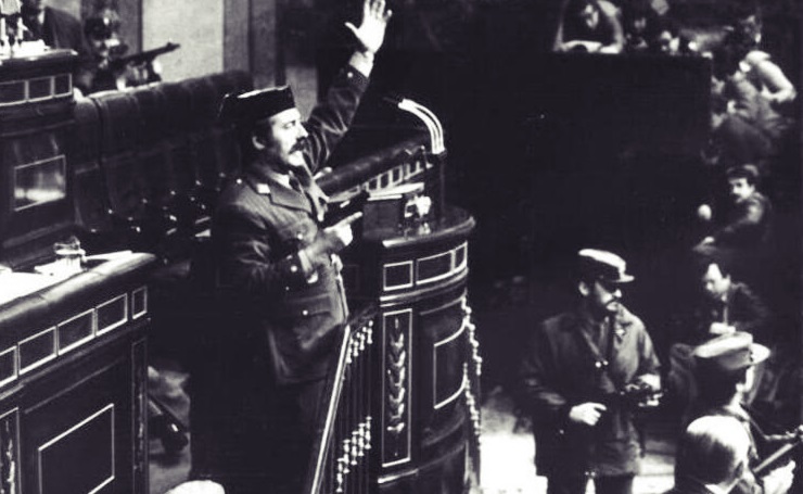 Στις 6.20 το απόγευμα της 23ης του Φλεβάρη 1981, μέσα στην κατάμεστη από βουλευτές και δημοσιογράφους αίθουσα της ισπανικής Βουλής, στο κέντρο της Μαδρίτης, ο αντισυνταγματάρχης της Πολιτοφυλακής Αντόνιο Τεχέρο ανεβαίνει στο βήμα και κολλά το περίστροφό του στον κρόταφο του προέδρου του Κοινοβουλίου. Ο Τεχέρο διατάζει τους βουλευτές να πέσουν στο πάτωμα, ενώ οι πολιτοφύλακες πυροβολούν με αυτόματα όπλα στον αέρα. Το συμβάν μεταδίδεται ζωντανά από εθνικό τηλεοπτικό δίκτυο. Τα γεγονότα κυλούν πλέον με κινηματογραφική ταχύτητα.