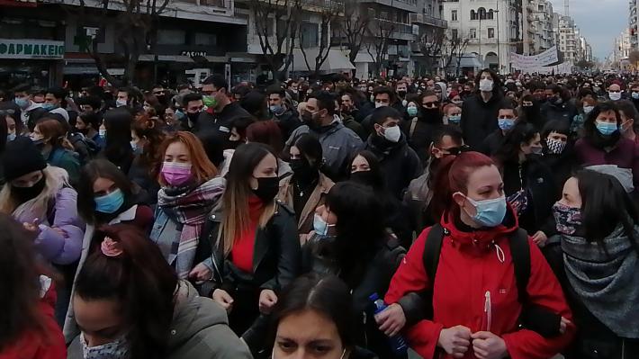«Κάτω τα χέρια από τους φοιτητές, έξω τα ΜΑΤ απ΄ όλες τις σχολές», είναι το σύνθημα που αντηχεί στους κεντρικούς δρόμους της Θεσσαλονίκης, καθώς είναι σε εξέλιξη η μαχητική πορεία των Φοιτητικών Συλλόγων της πόλης ενάντια στην καταστολή, με αφορμή τη νέα εισβολή της Αστυνομίας στο Αριστοτέλειο Πανεπιστήμιο. Απαιτούν την αποχώρηση των ΜΑΤ, την απελευθέρωση των προσαχθέντων και το ασφαλές άνοιγμα των σχολών τους.
